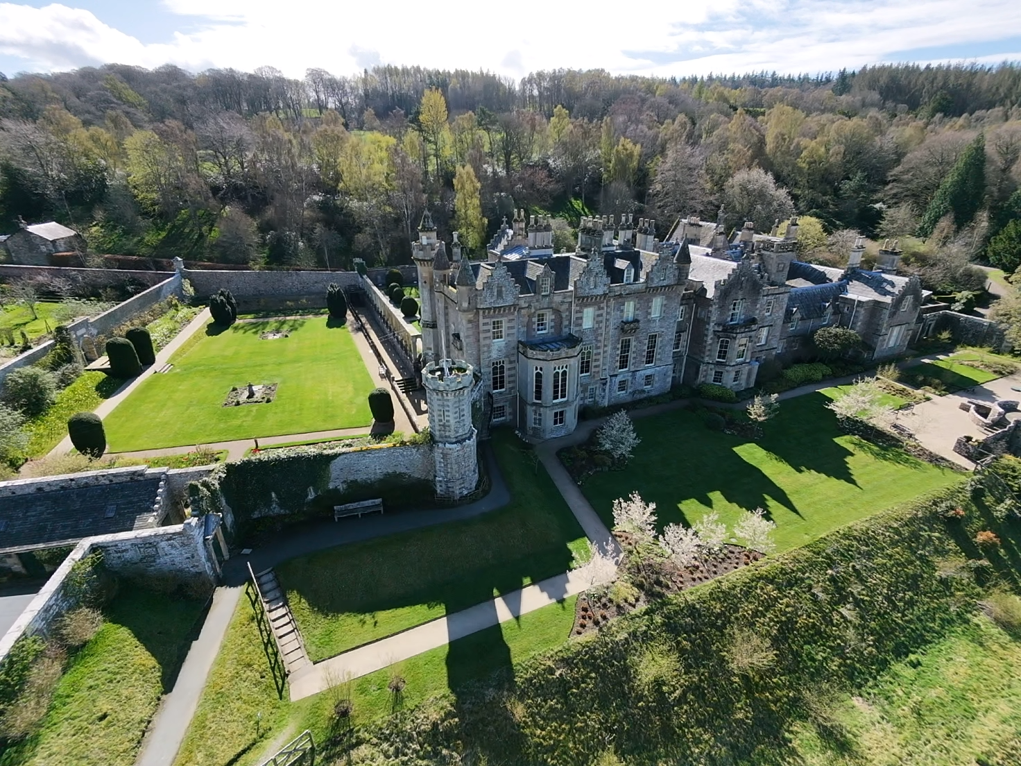 The estate’s neo-Medieval features reflect Scott’s interest in historical design, while he also ensured the house offered modern comforts. Scott used the property to test new technologies, including early gas lighting and pneumatic bells that connected residents with servants throughout the house.