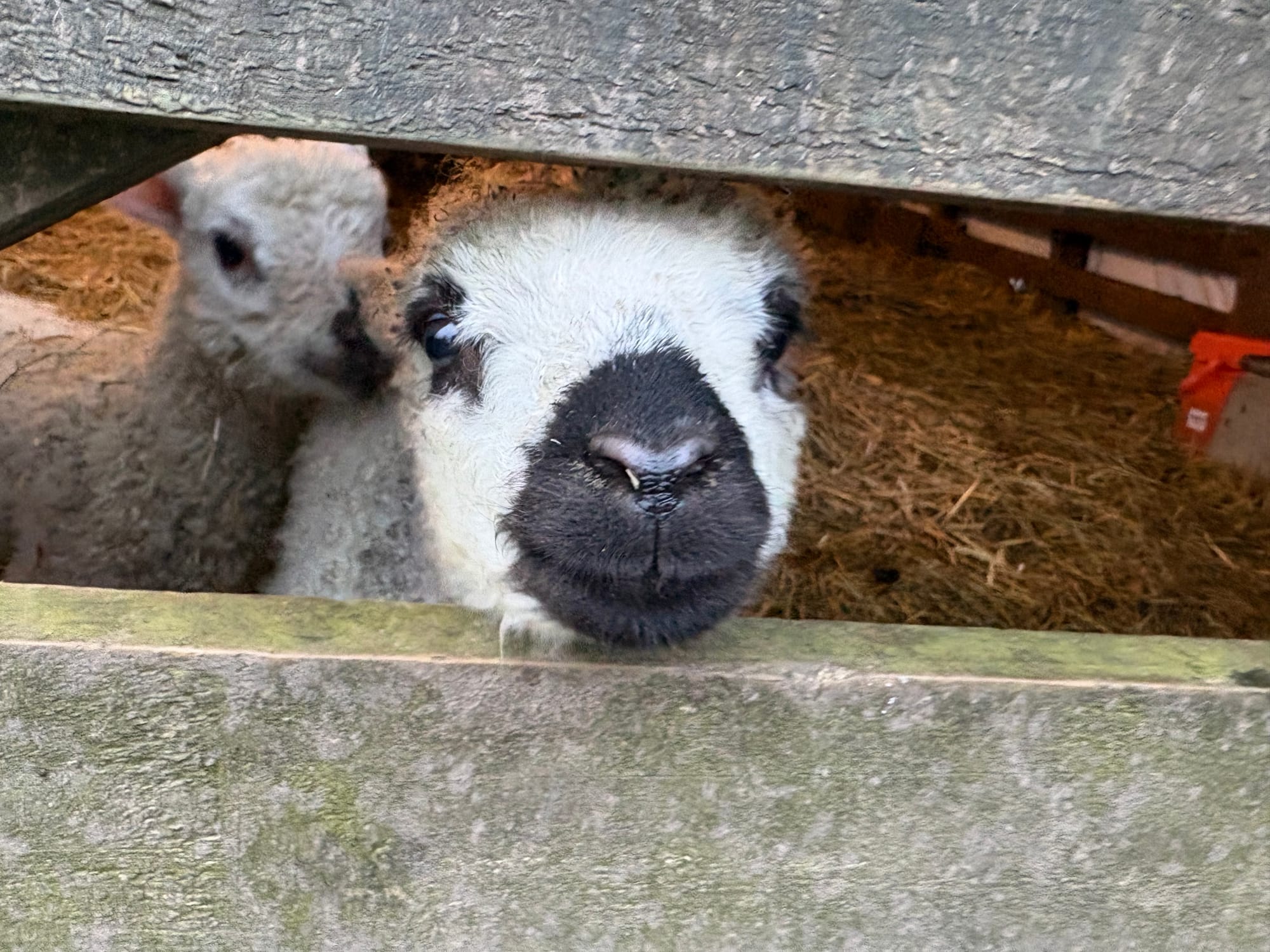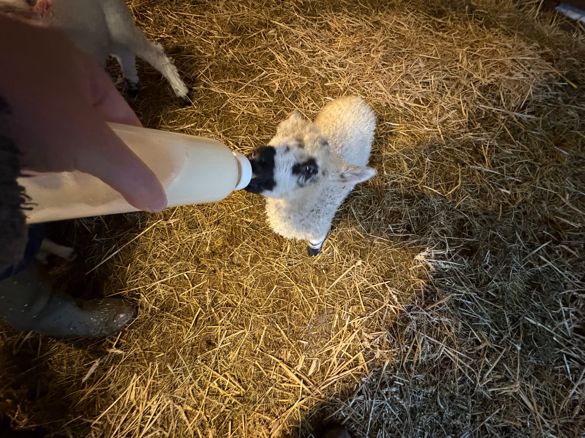 One of Lucy's ewe lambs stands waiting, hunger shining in her eyes.