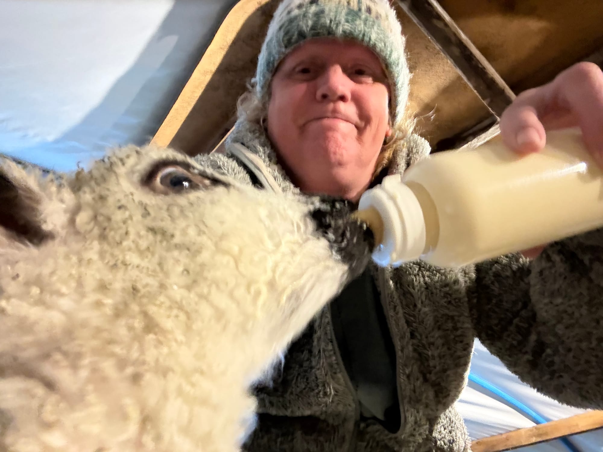 Once a cade lamb, Stumpy the ewe still hurries to the bottle, only to be turned away time and again.
