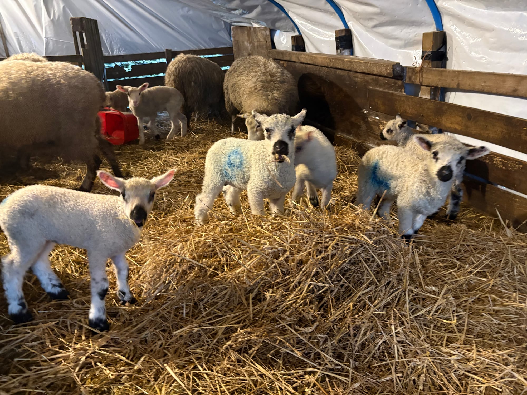 Picture the ewes and lambs nestled together on one side of the tunnel, creating a gentle, living tapestry.