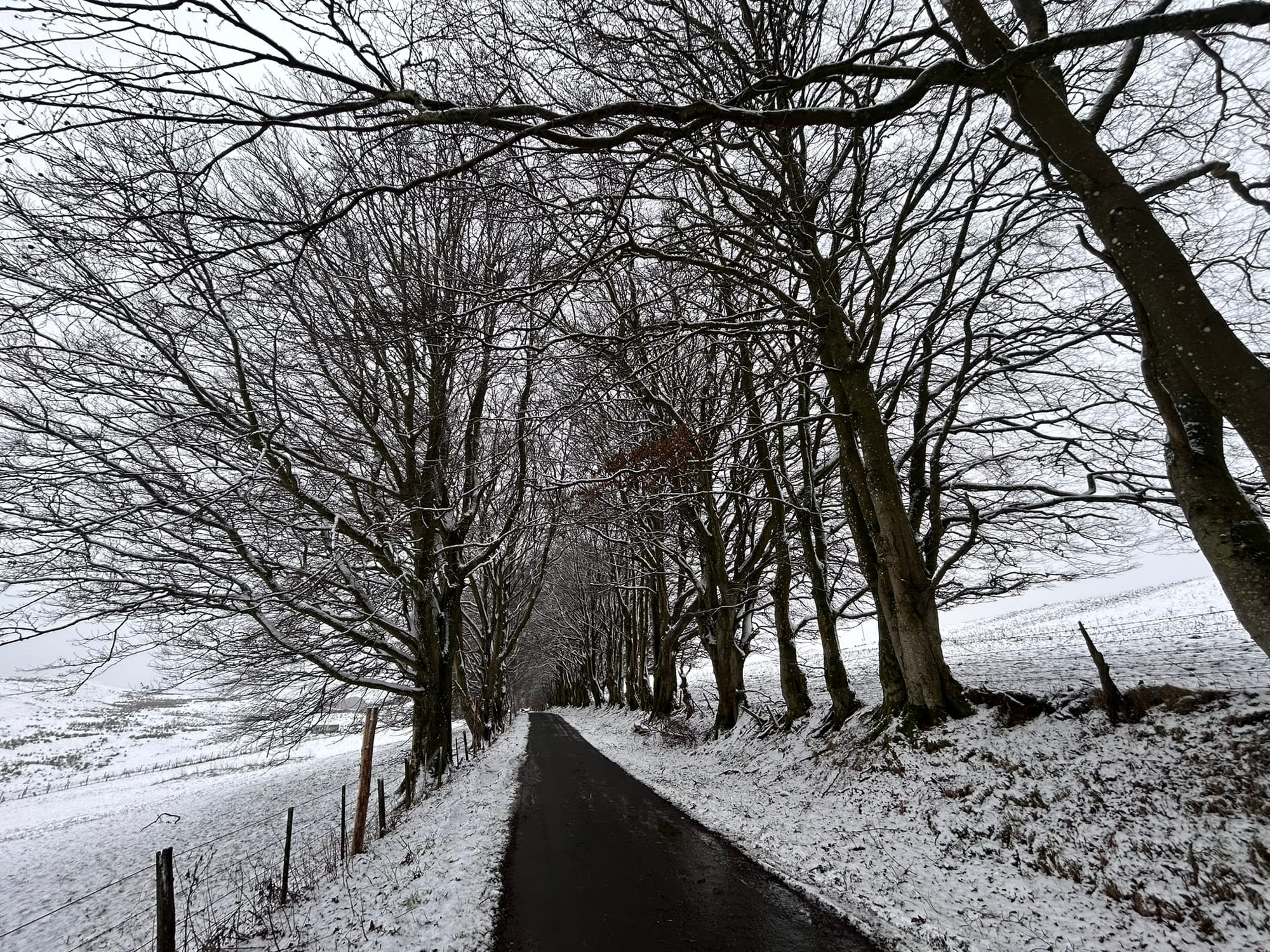 It snowed yesterday, and Charlie took me for a drive toward Ashkirk. As we climbed the bank of an empty valley, the road hadn’t been gritted, and it was hard to see. I didn’t see much point in going further to take photos for this post. I like staying at the farm, but sometimes anxiety adds to the feeling of cabin fever.