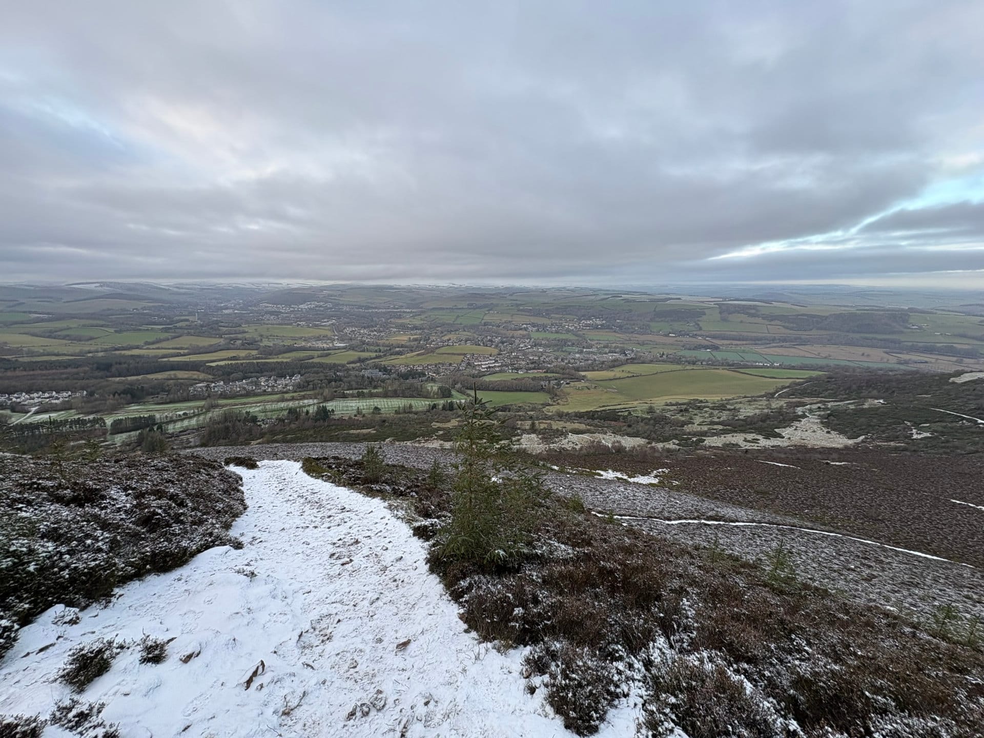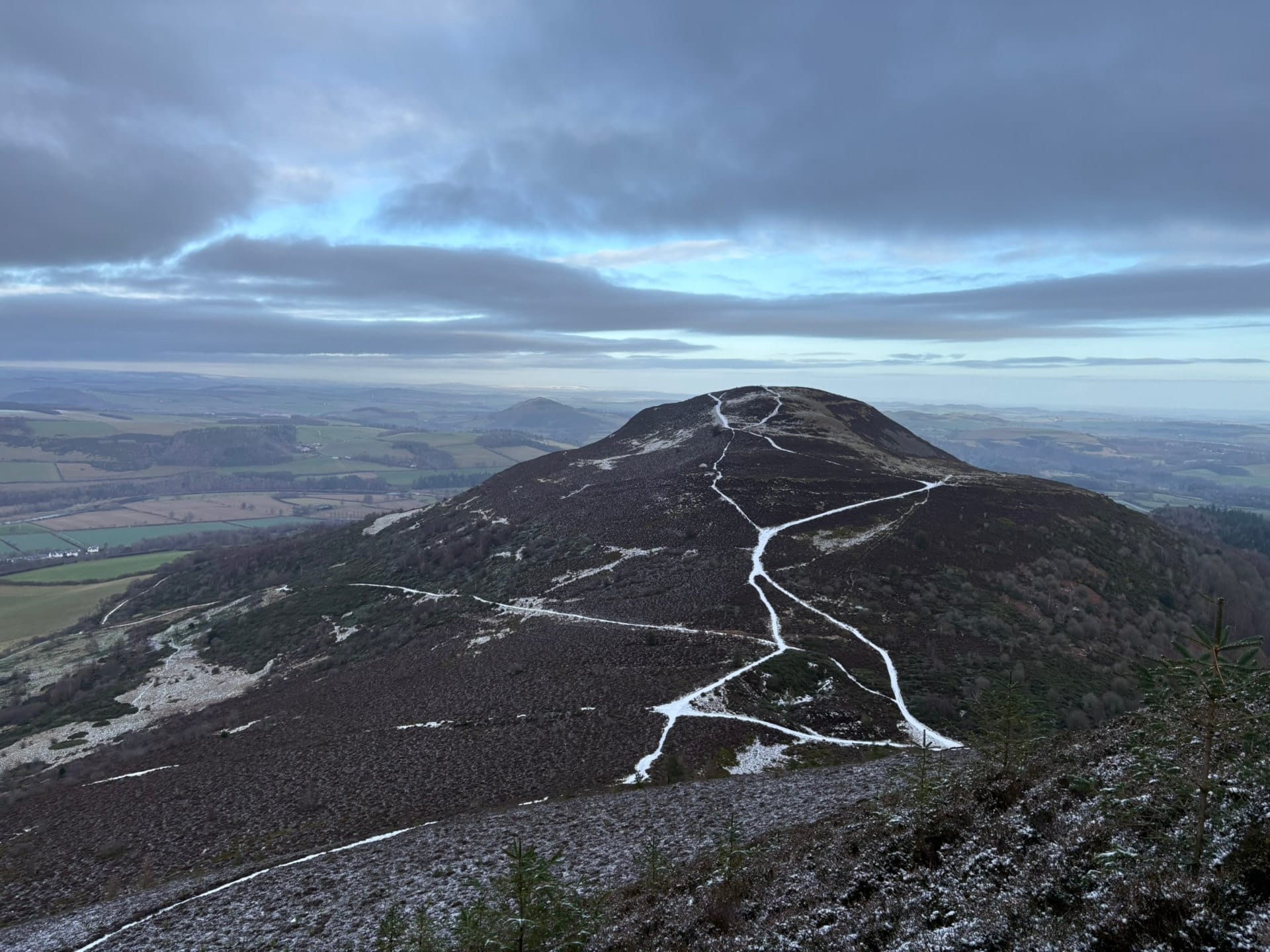 Eildon Hill is just south of Melrose in the Scottish Borders and looks out over the town. People often call it "the Eildons" or "Eildon Hills" because it has three peaks.