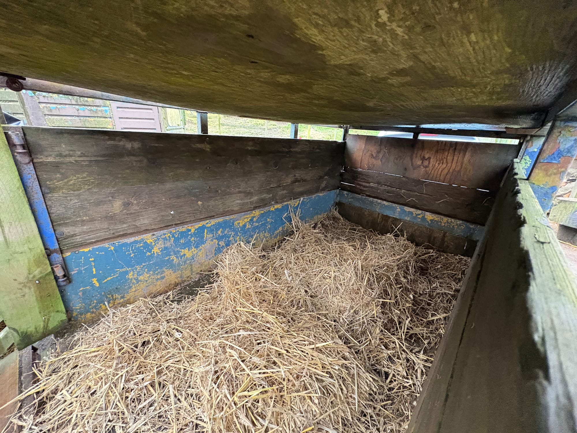 We put hay and straw in the trailer to keep the ewes inside while we use the lambs to help catch more ewes.