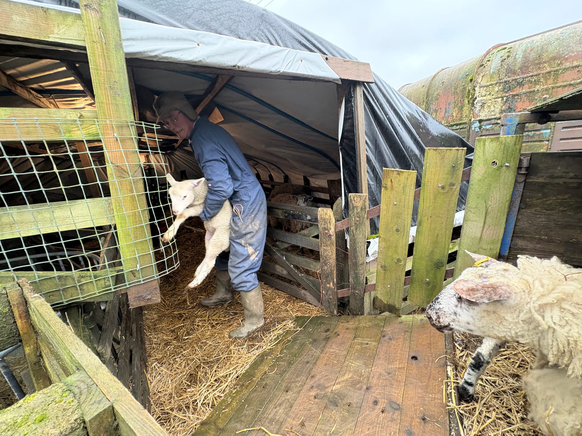 Charlie tries to coax a ewe with her lamb, and the poly tunnel turns into a scene of complete chaos.