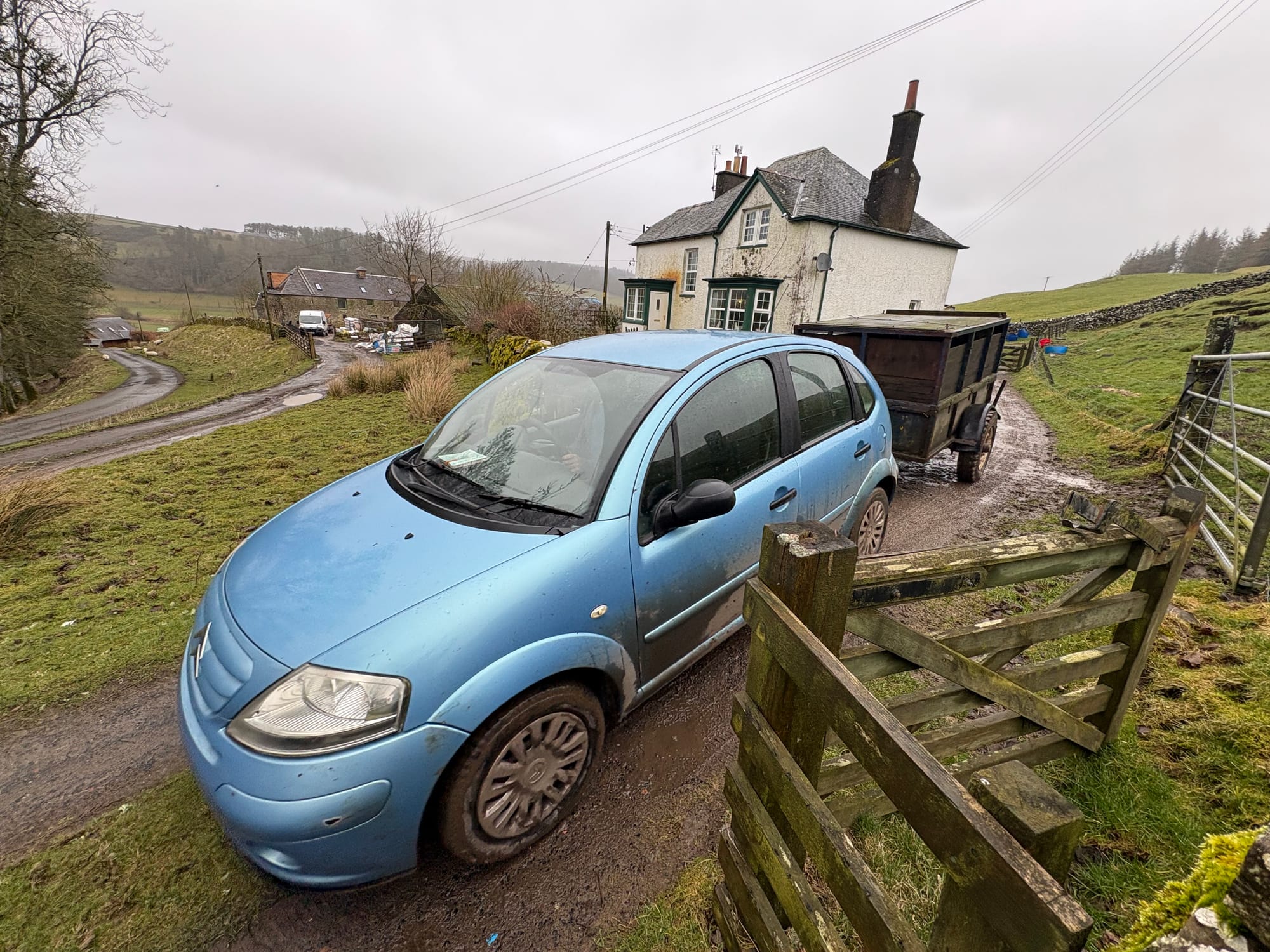 We brought Stumpy the ewe down from the paddock so she wouldn’t be alone before we drove away from Woodburn farmhouse in the C3.