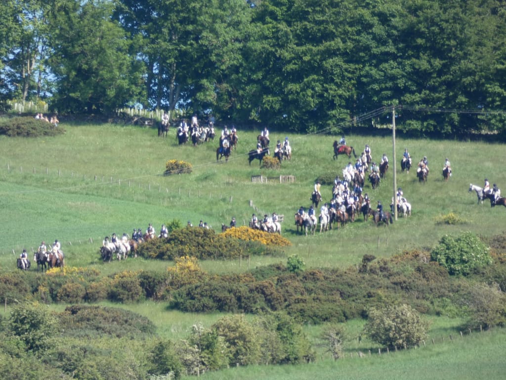 While I was waiting for Charlie, I saw the Common riding along the hillside. I think it was the Denholm ride out, passing near Rubis Law, out looking for English people on horseback.
