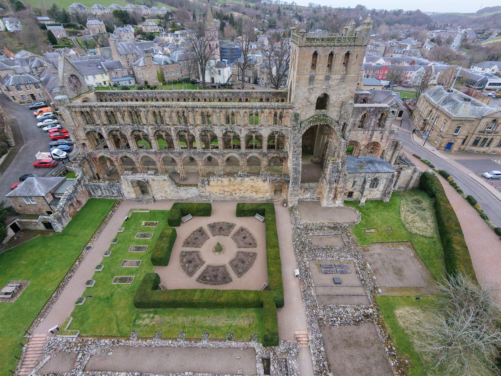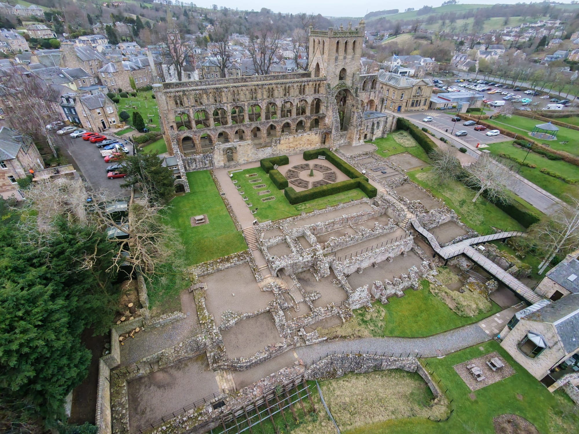 Jedburgh Abbey, a majestic Augustinian ruin dating back to the 12th century, stands proudly in the heart of Jedburgh, nestled in the Scottish Borders just ten miles from England's Carter Bar.