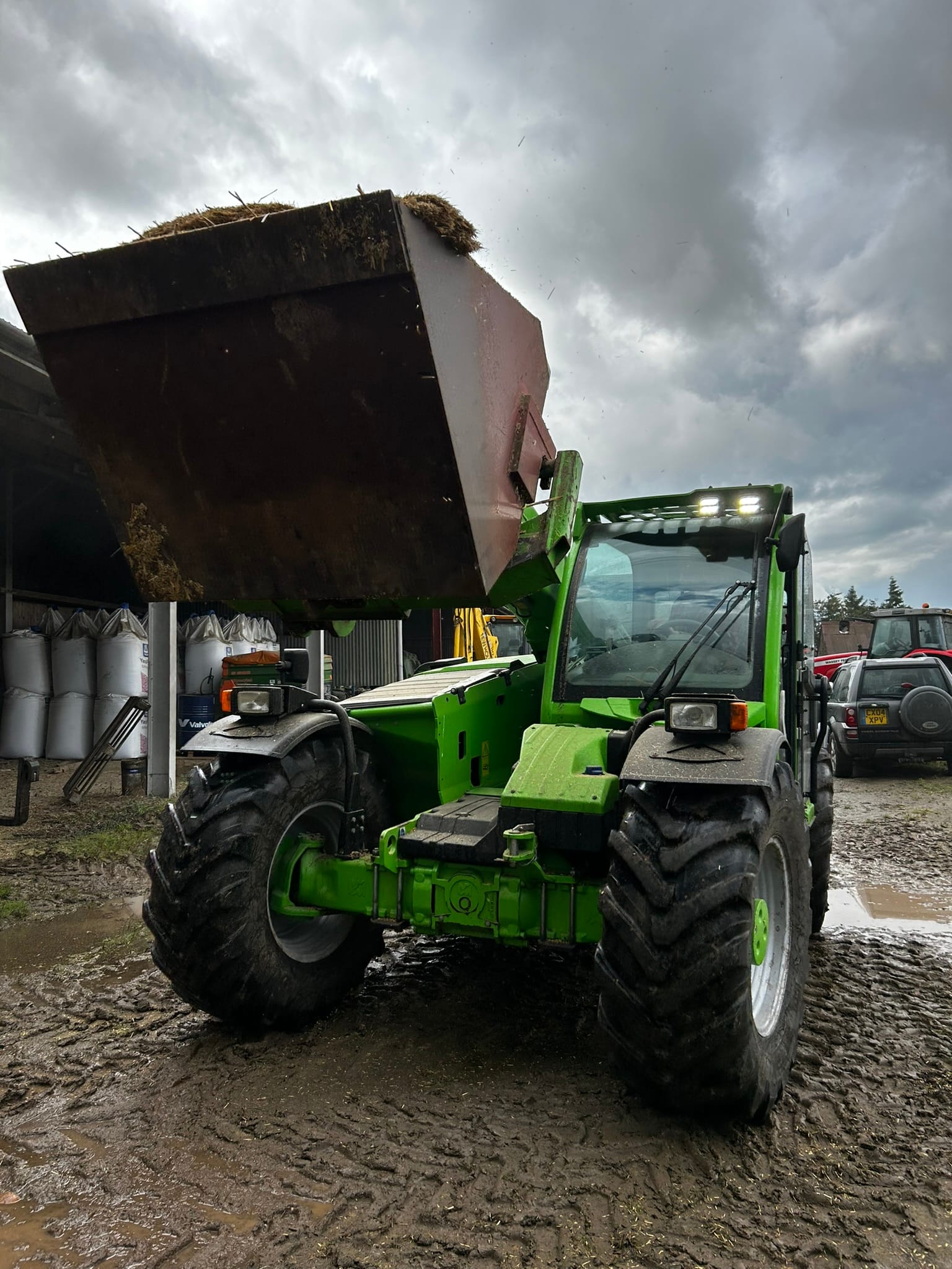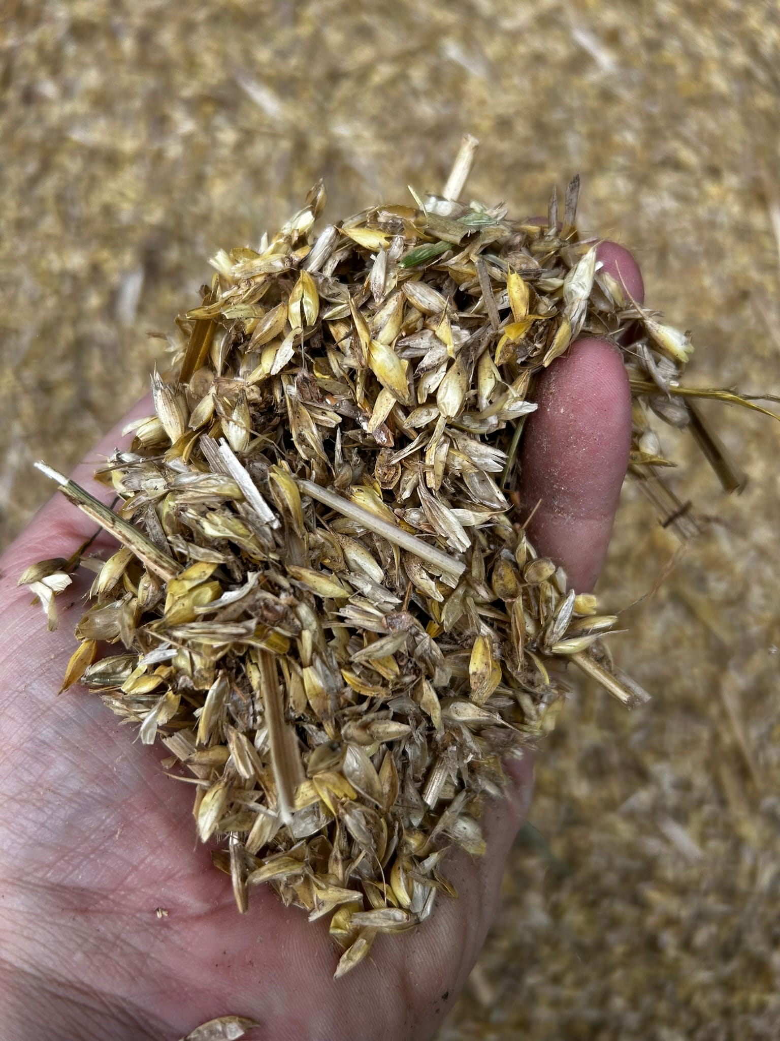 We loaded chaff into a container. The contents will be gradually fed to the sheep over the winter months.