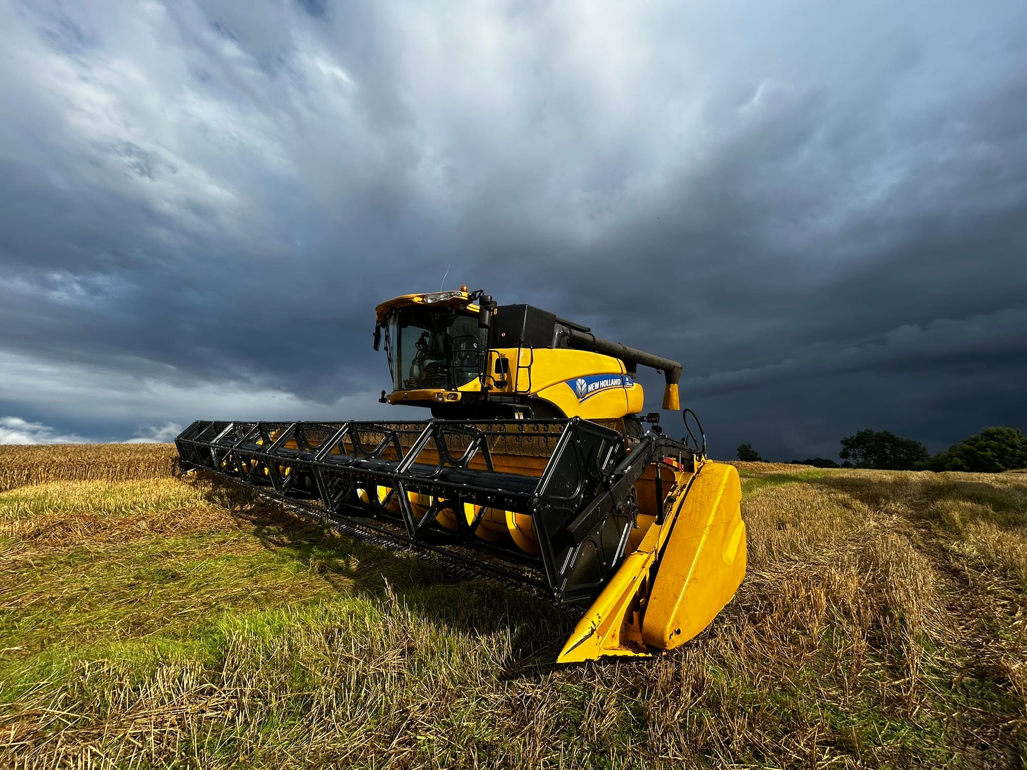 As we left Bowden, I asked Charlie to stop the 4x4 so I could photograph a combine harvester. Charlie commented on the impressive width of the header, recalling that his previous combine had a header only 8 feet wide.