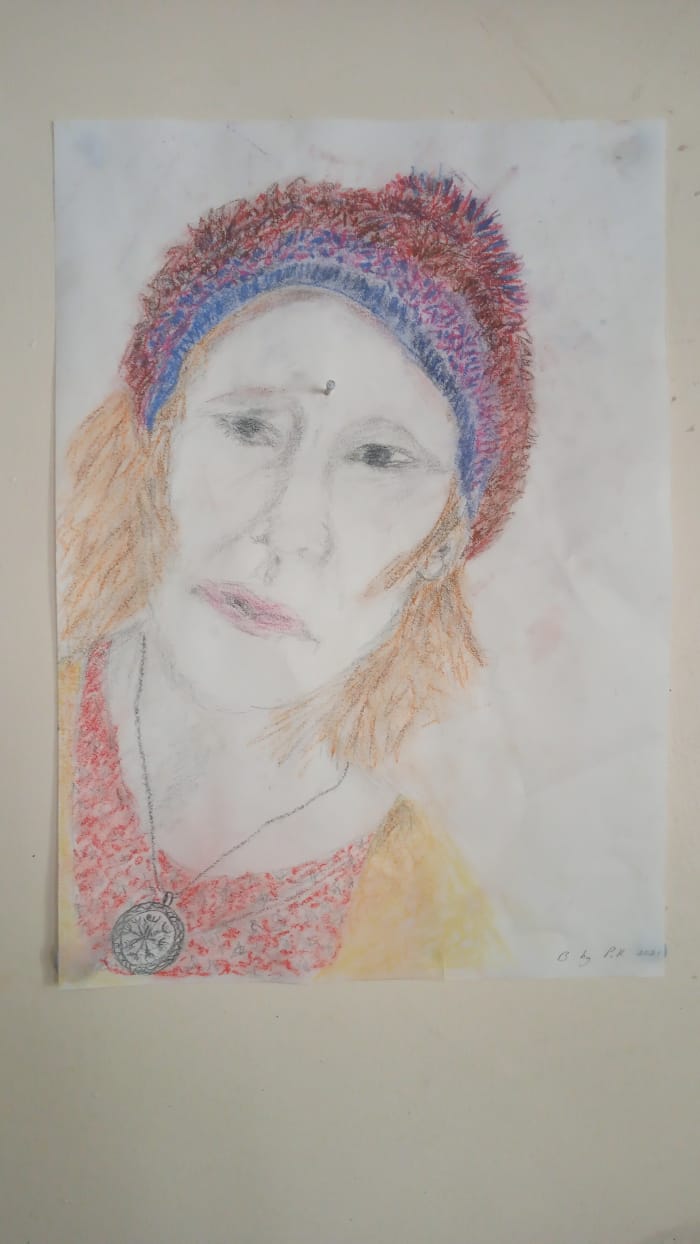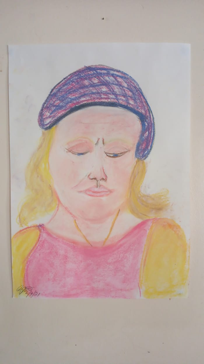 Here are two portraits of me, each drawn by a different support worker at New Start.