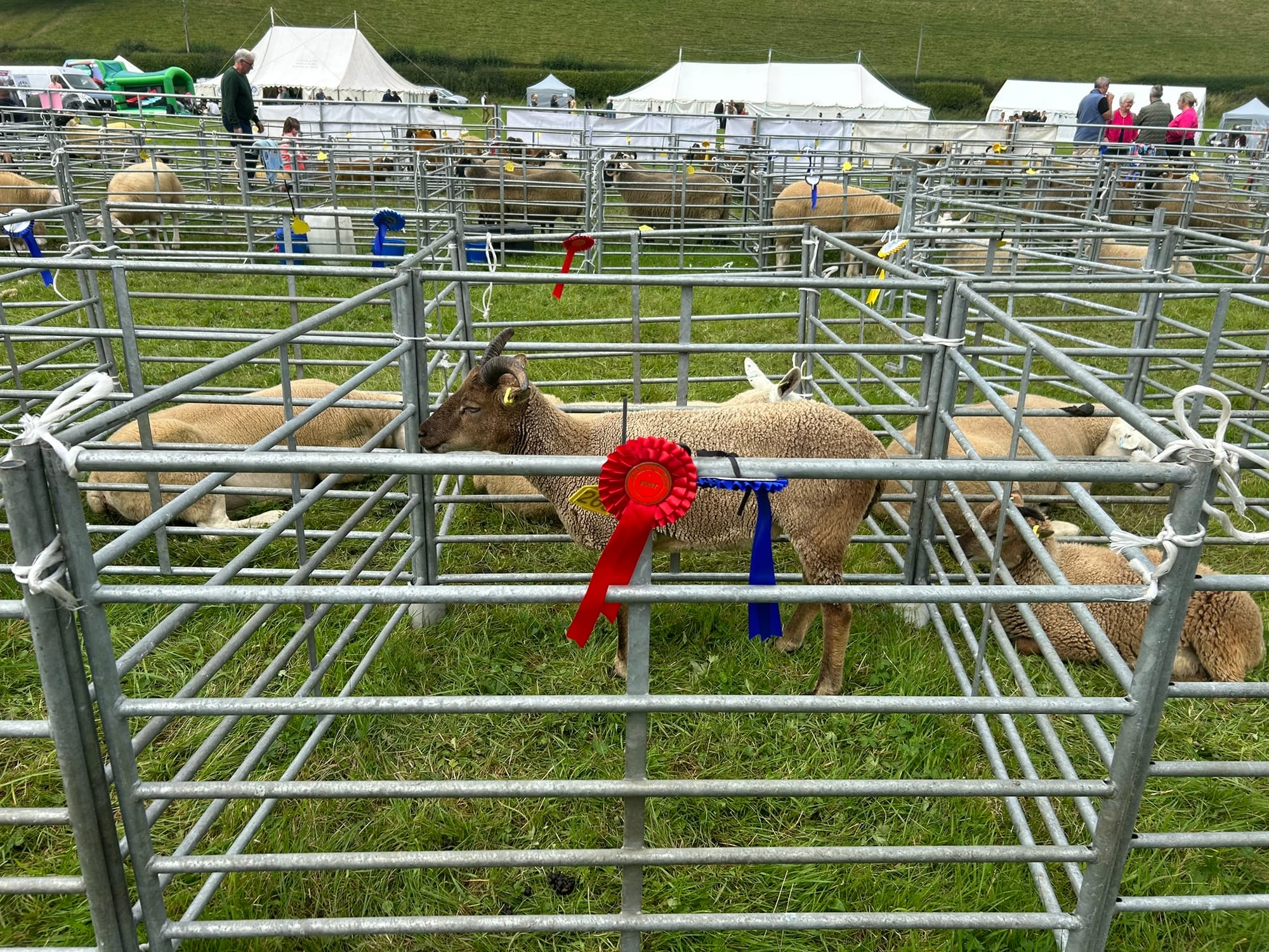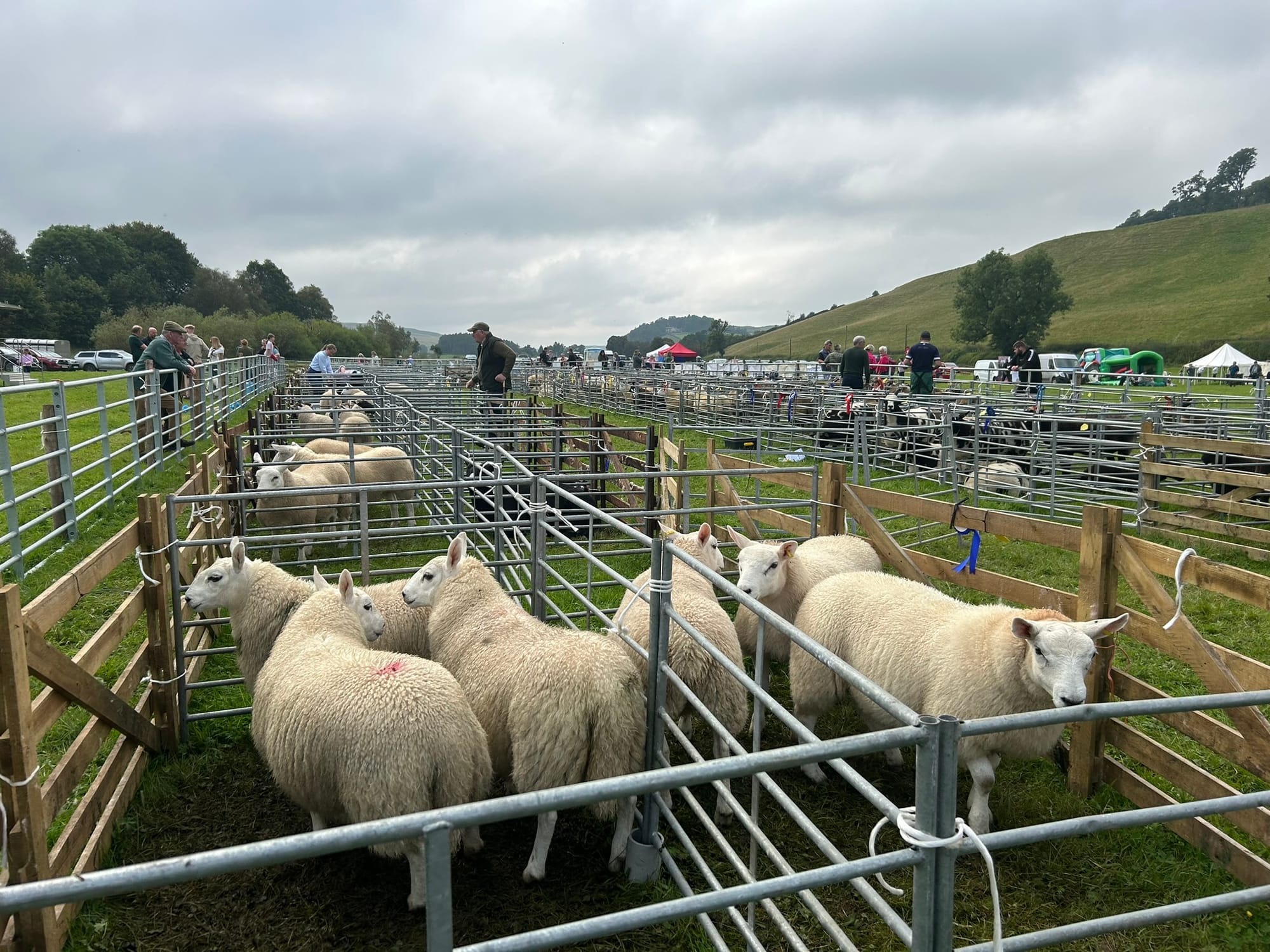 In the morning, two days of rain cleared for the Roberton Show. We drove to the event with Charlie's sheepdog Sam. This is our second time attending, after last year. We arrived just after 10:30am and walked to the judging pens.