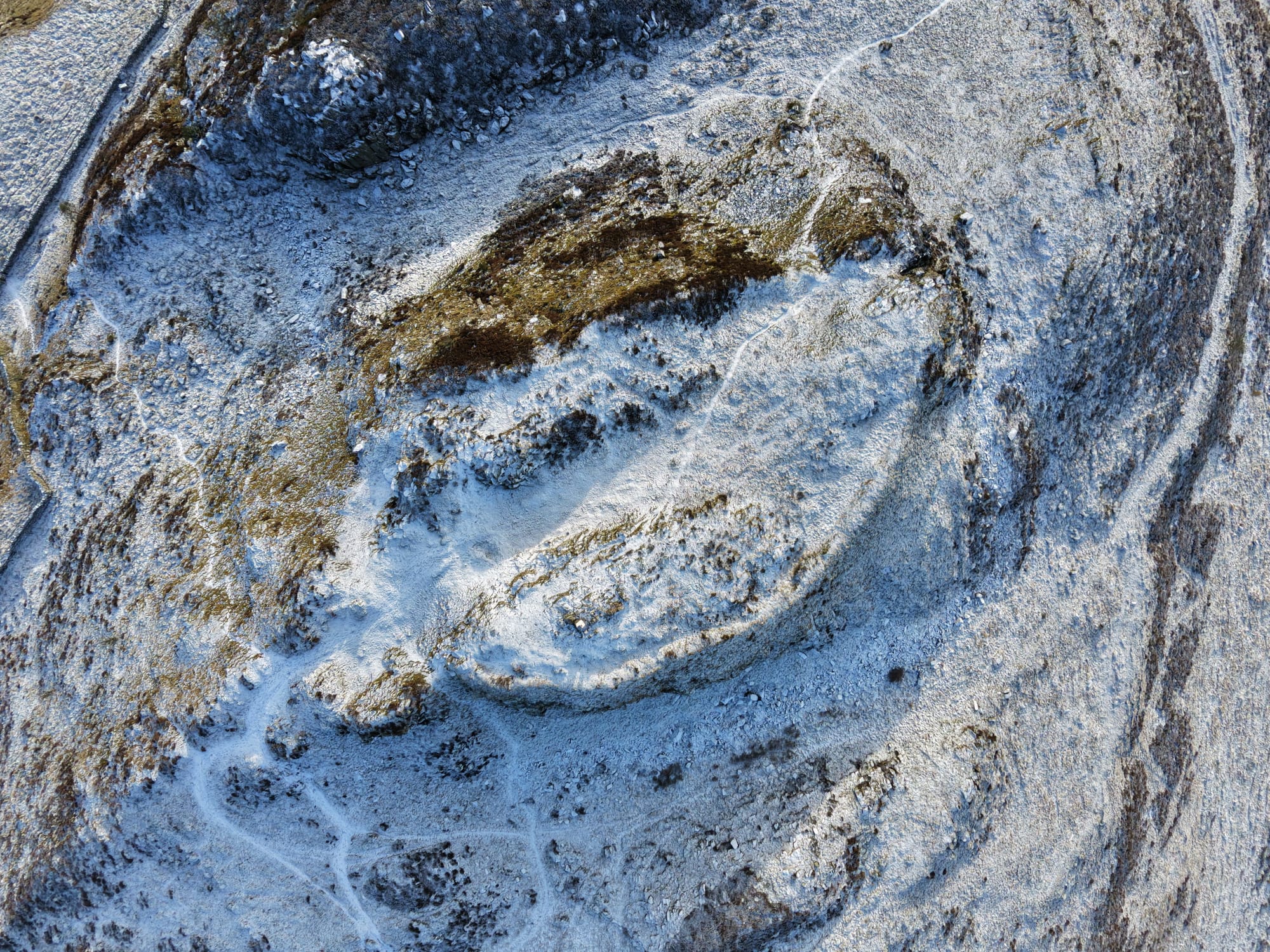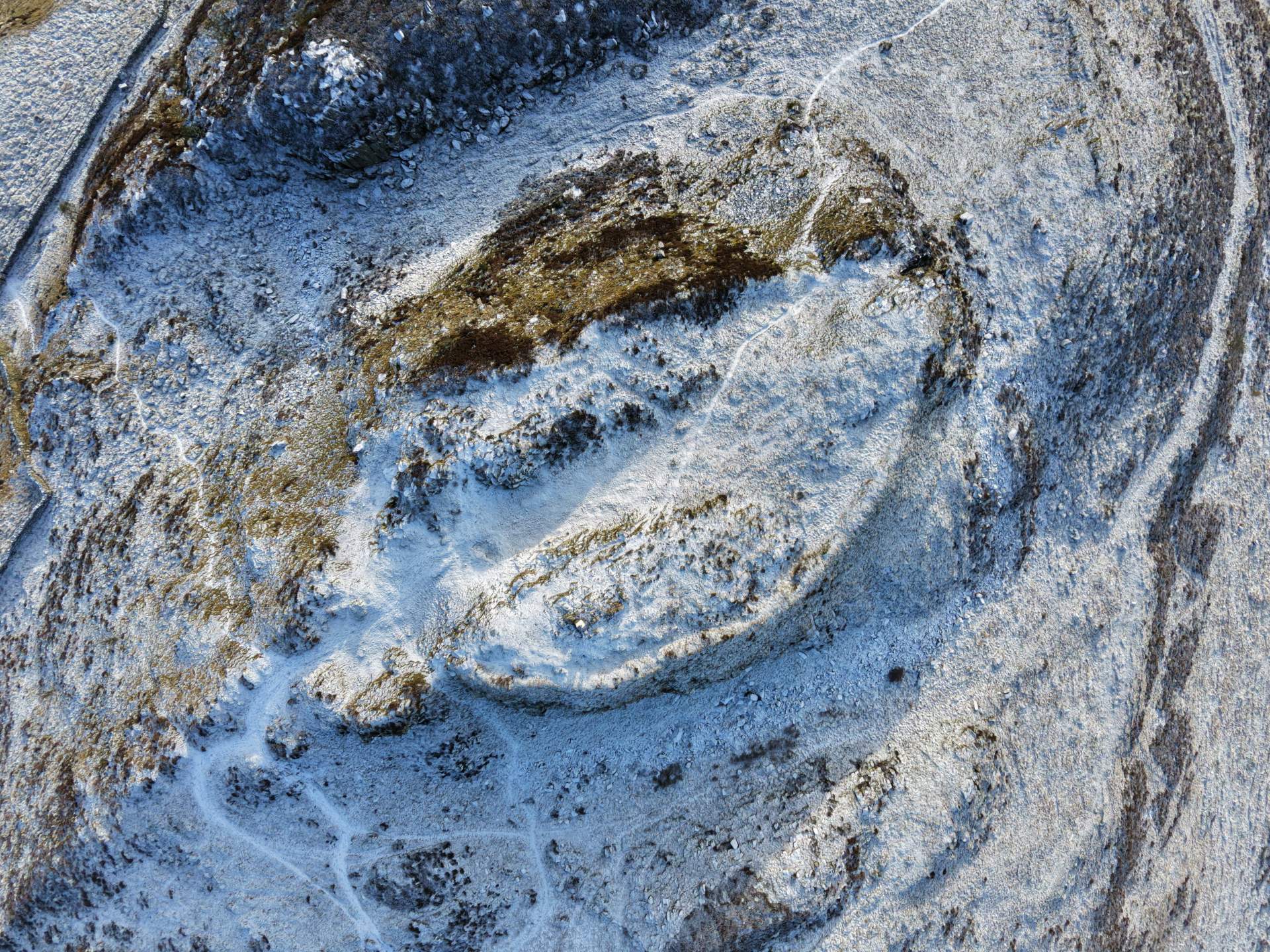 Near the summit, you can find the remains of several historical structures. These include an Iron Age hill fort, a Roman signal station, and a "nuclear fort" from the Early Middle Ages.