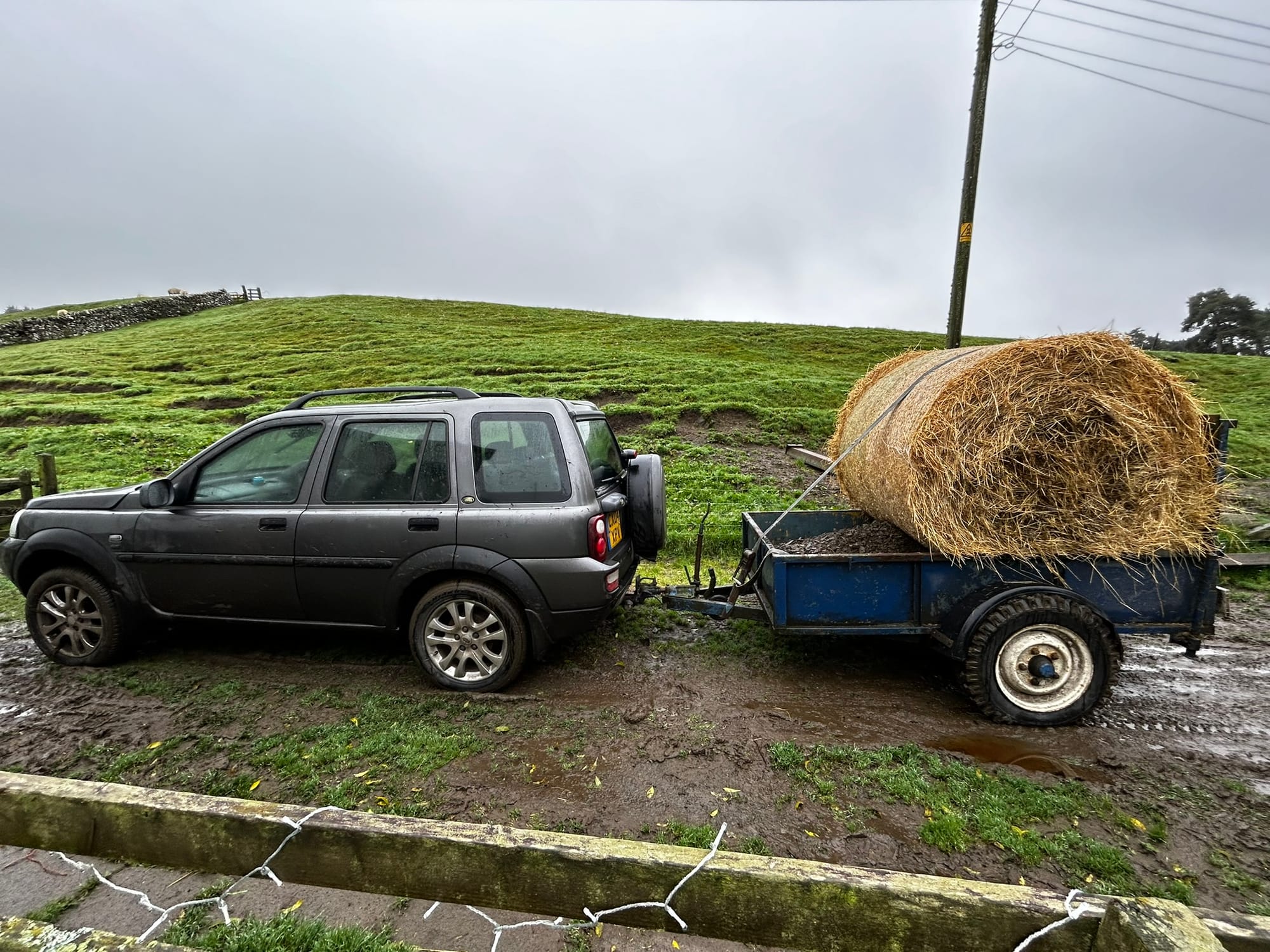 We used the 4x4 to move a few buckets of type one stone and to bring a bale of hay for our lambs in the poly tunnel