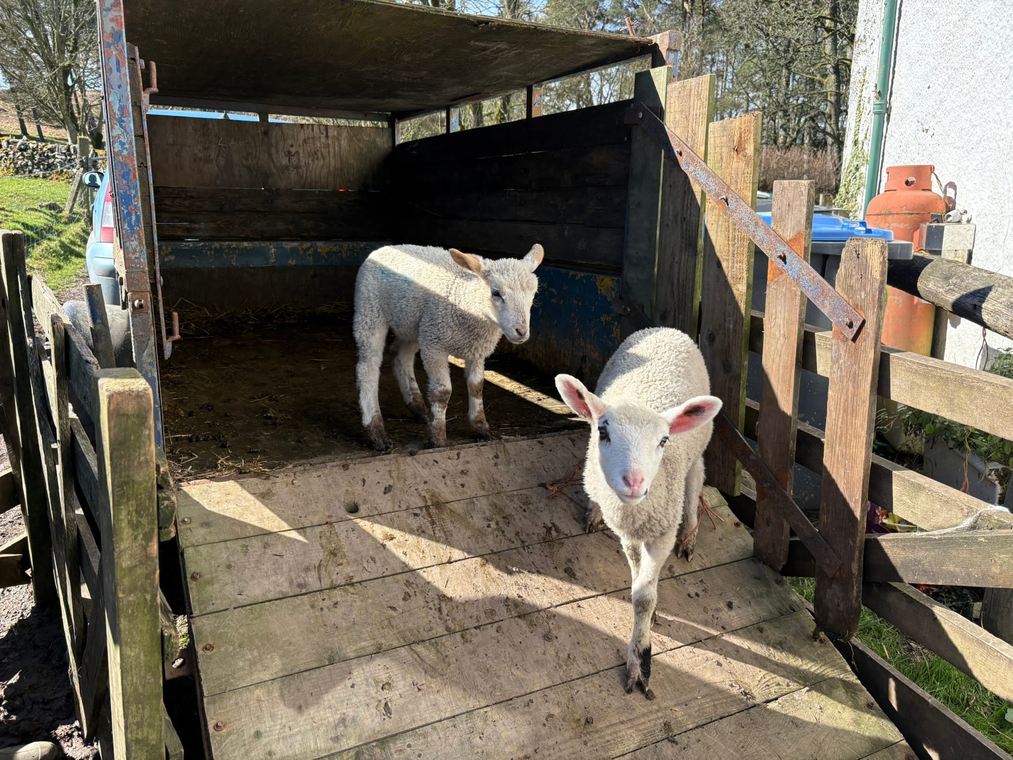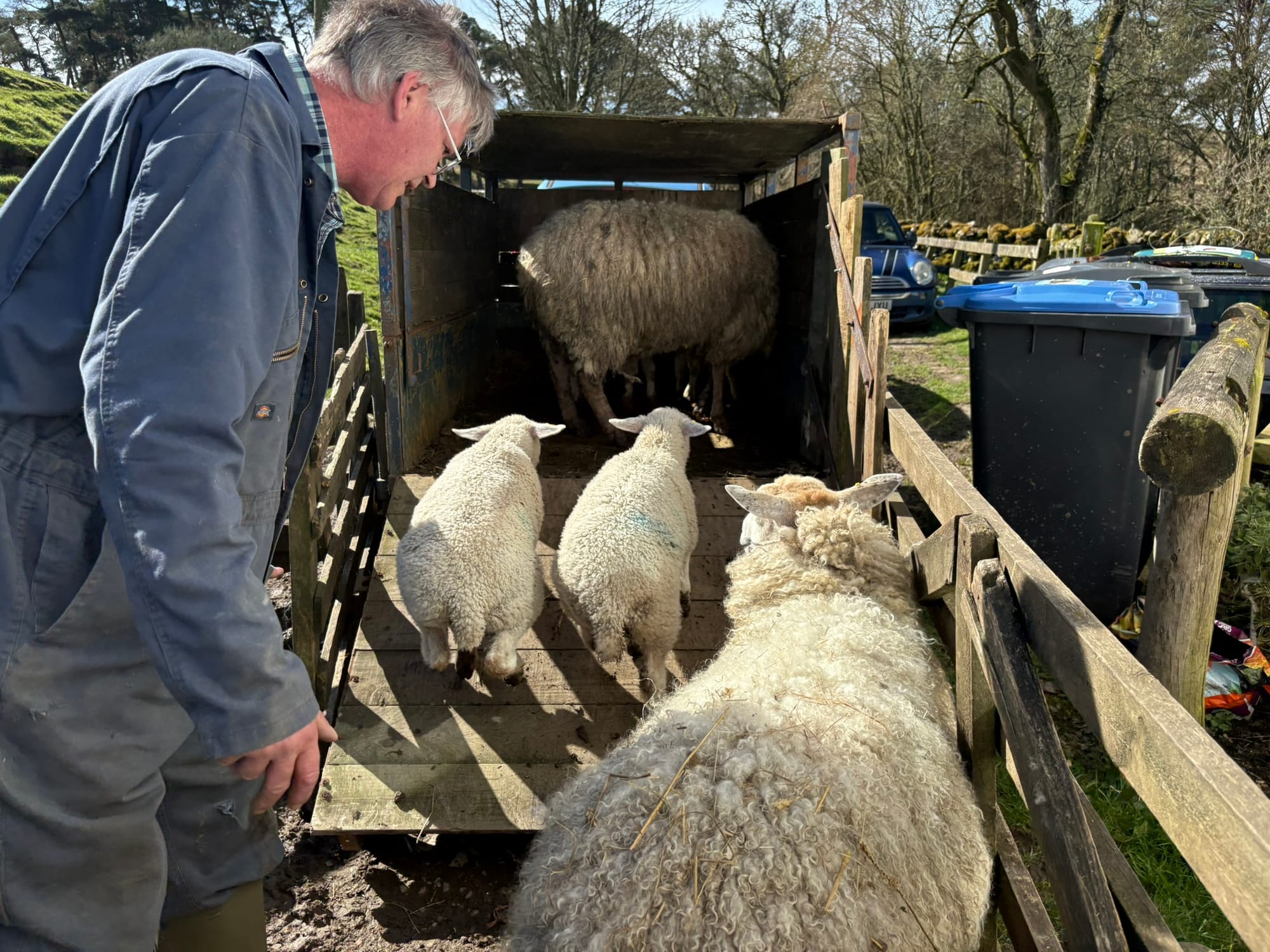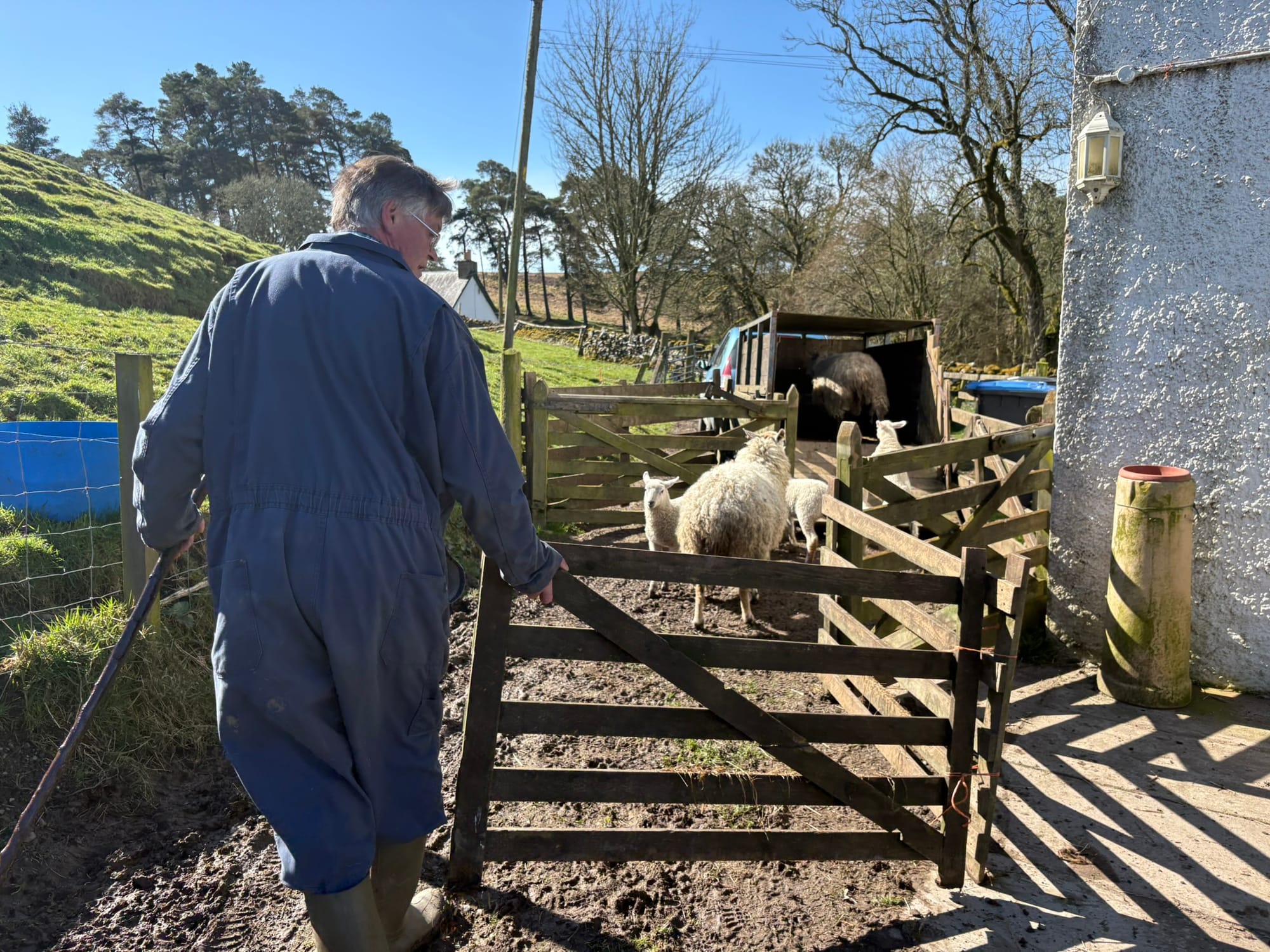 Now, Sassenach outsiders, let's dive back into today's agenda and tackle our tasks with purpose. First, we will hitch up the livestock trailer and gather the ewes and lambs, readying them for the journey ahead.