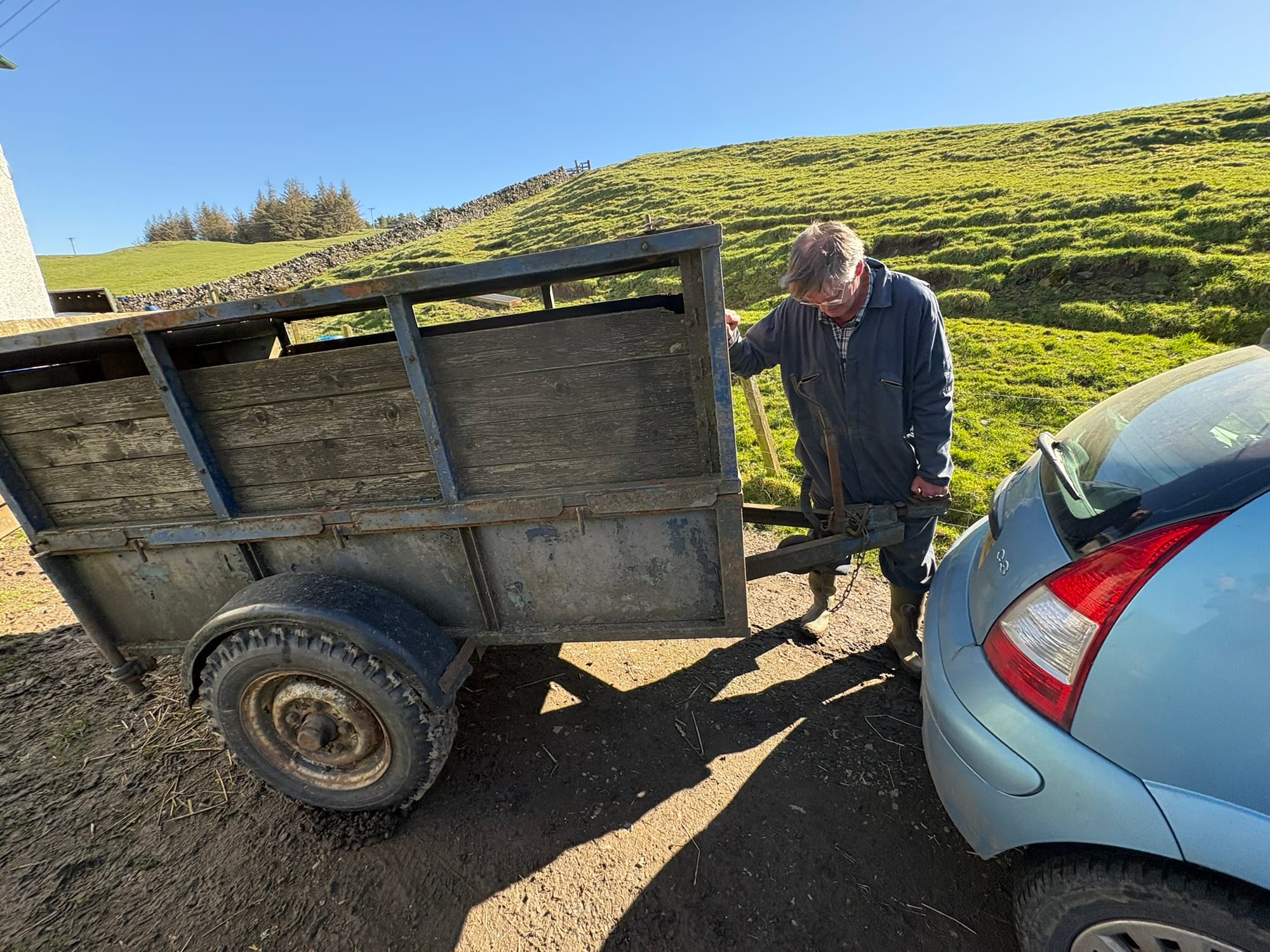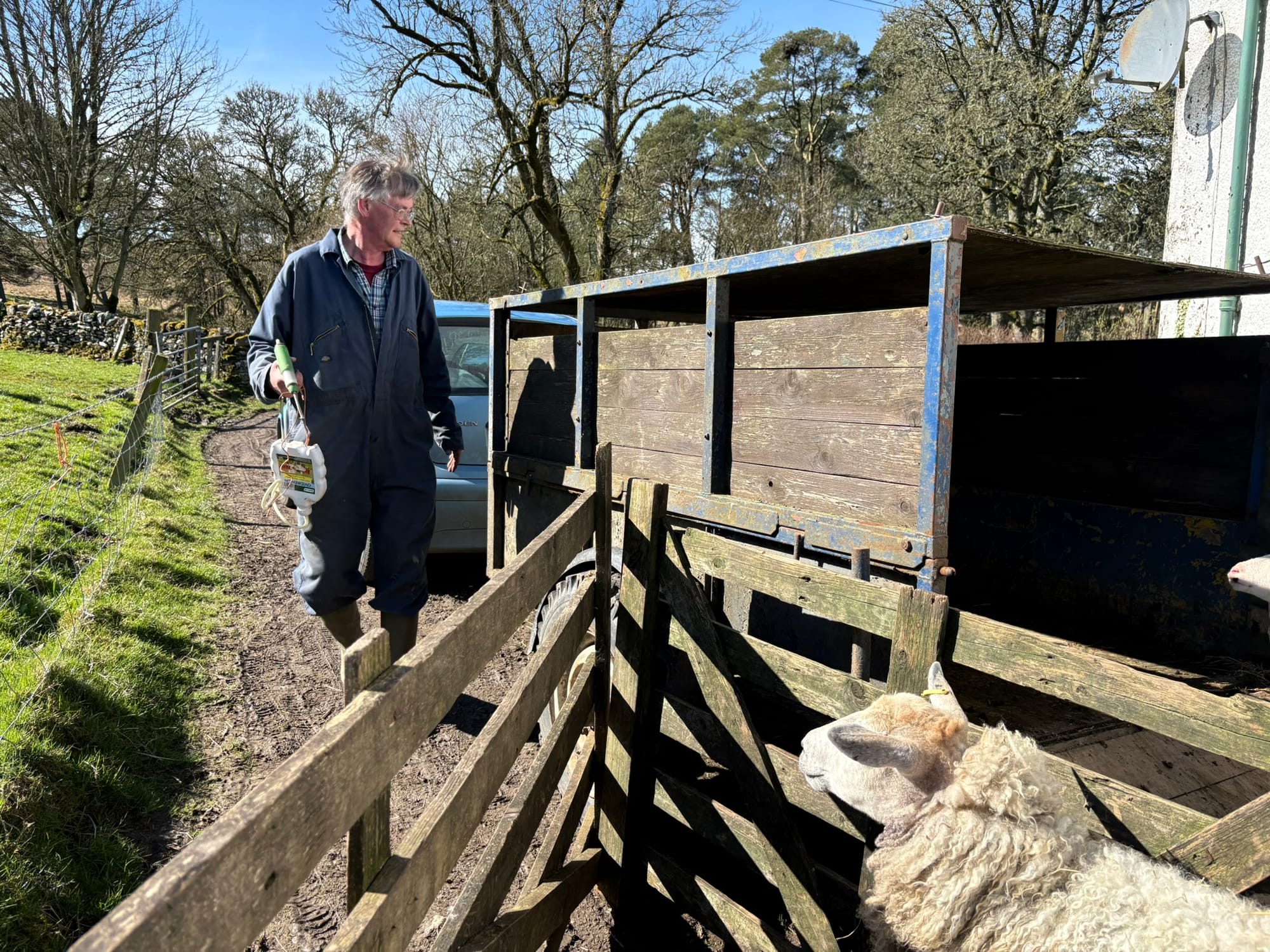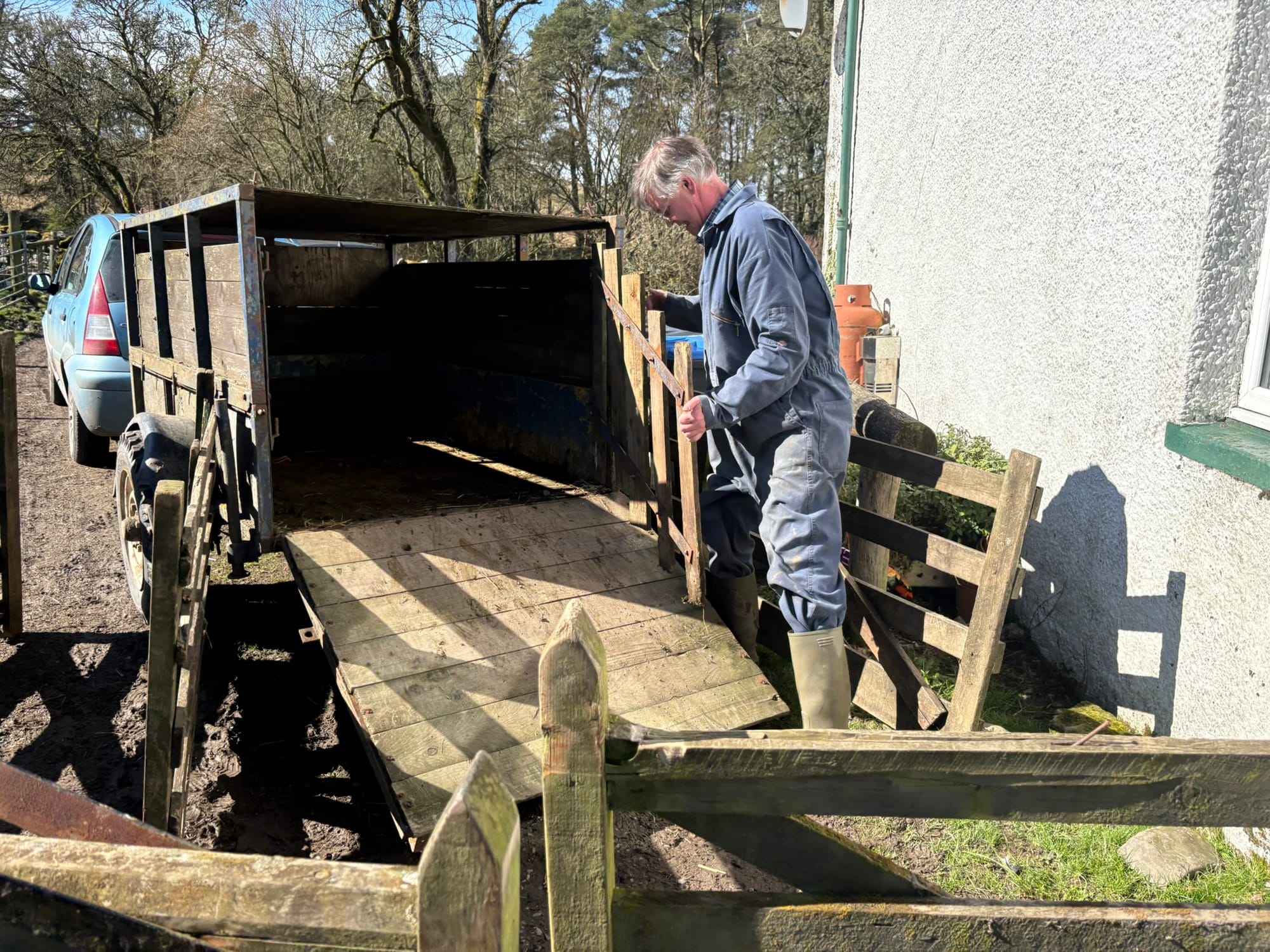 Now, Sassenach outsiders, let's dive back into today's agenda and tackle our tasks with purpose. First, we will hitch up the livestock trailer and gather the ewes and lambs, readying them for the journey ahead.