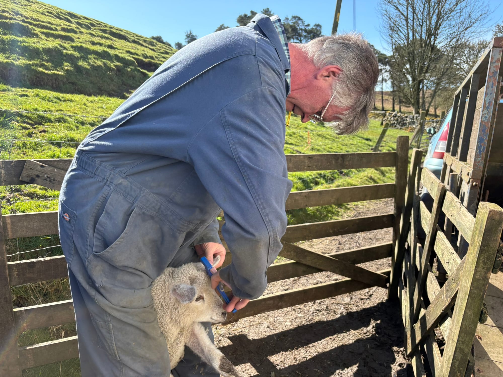 By law, every sheep must wear an identity tag, turning fields into pastures of numbered wanderers.