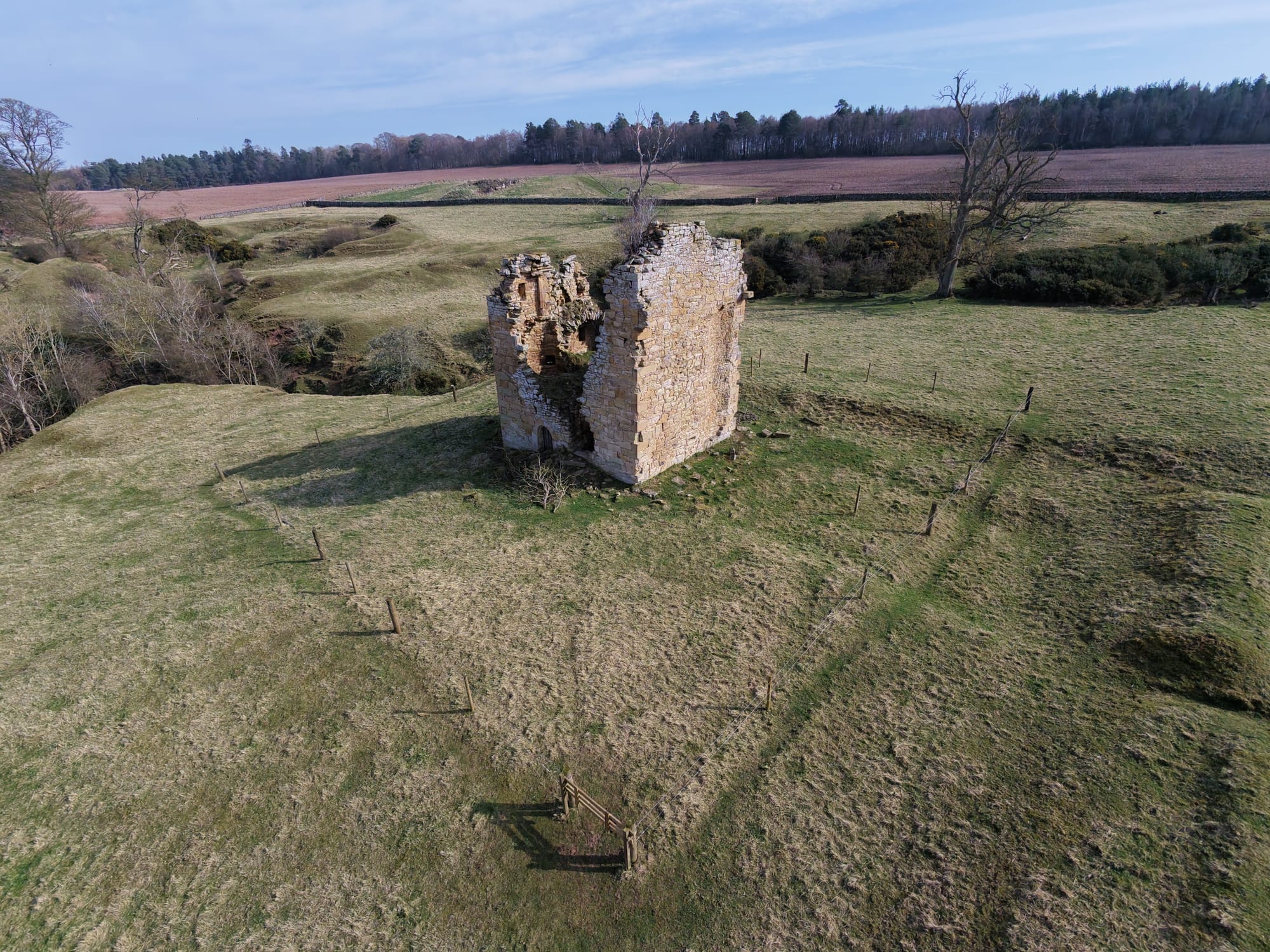 Timpendean Tower, formerly known as Typenden Castle, is a ruined 15th-century tower house near Lanton, approximately 1.5 miles (2.4 km) north-west of Jedburgh in the Scottish Borders.