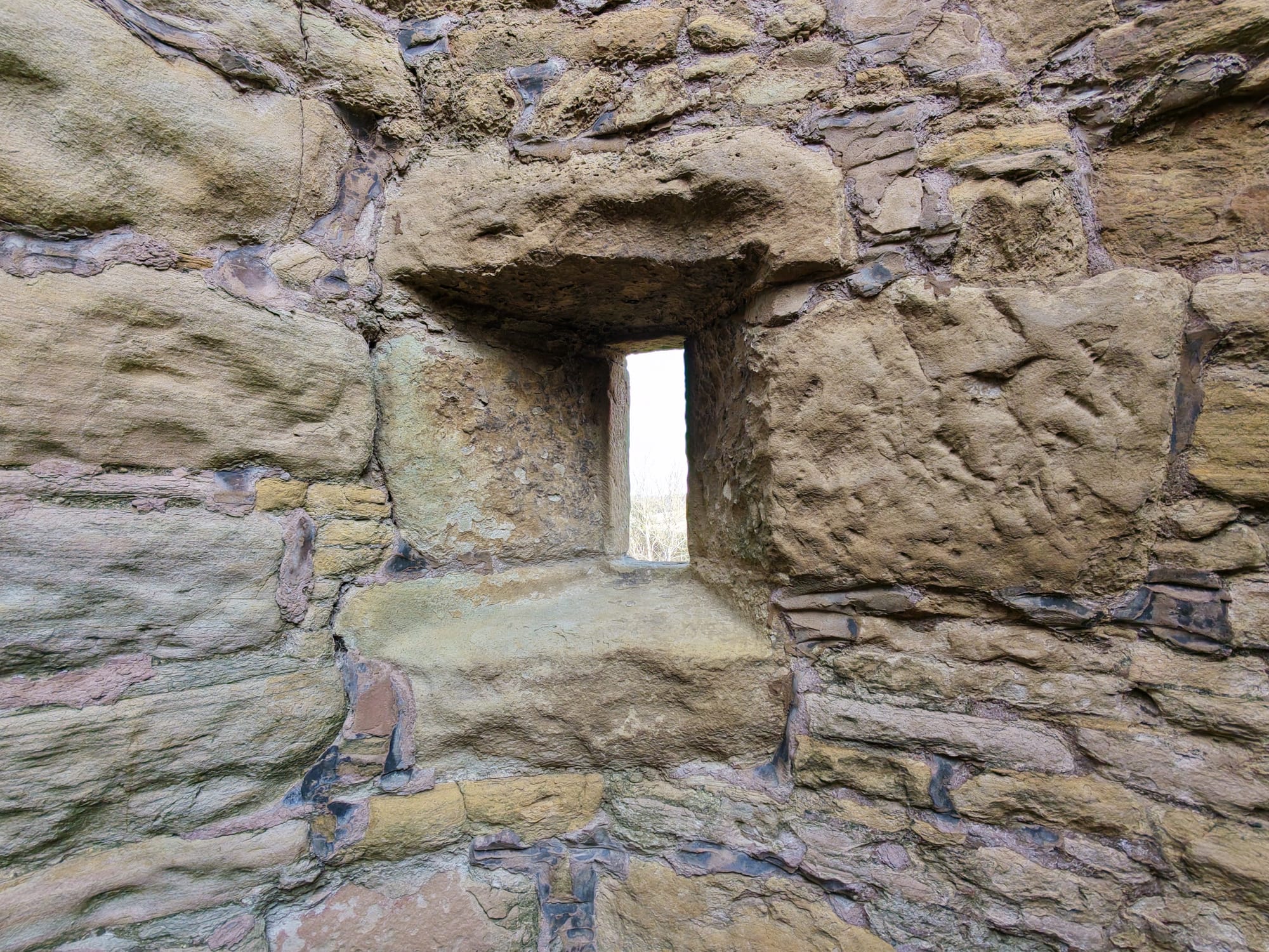 The great hall was on the first floor, and the sleeping quarters were on the second. A circular staircase on the east wall connected these floors. Part of the nearby earthworks was dammed and filled with water to help defend the tower.