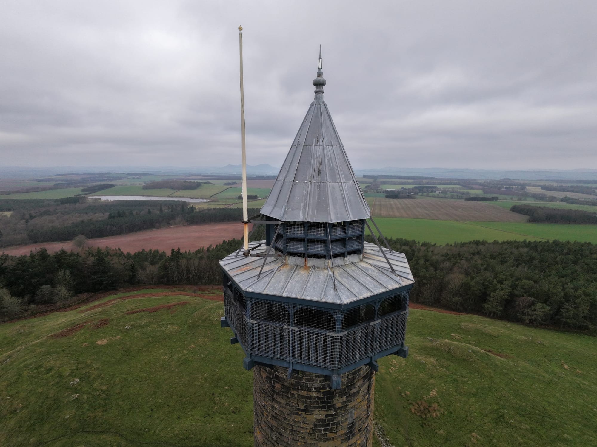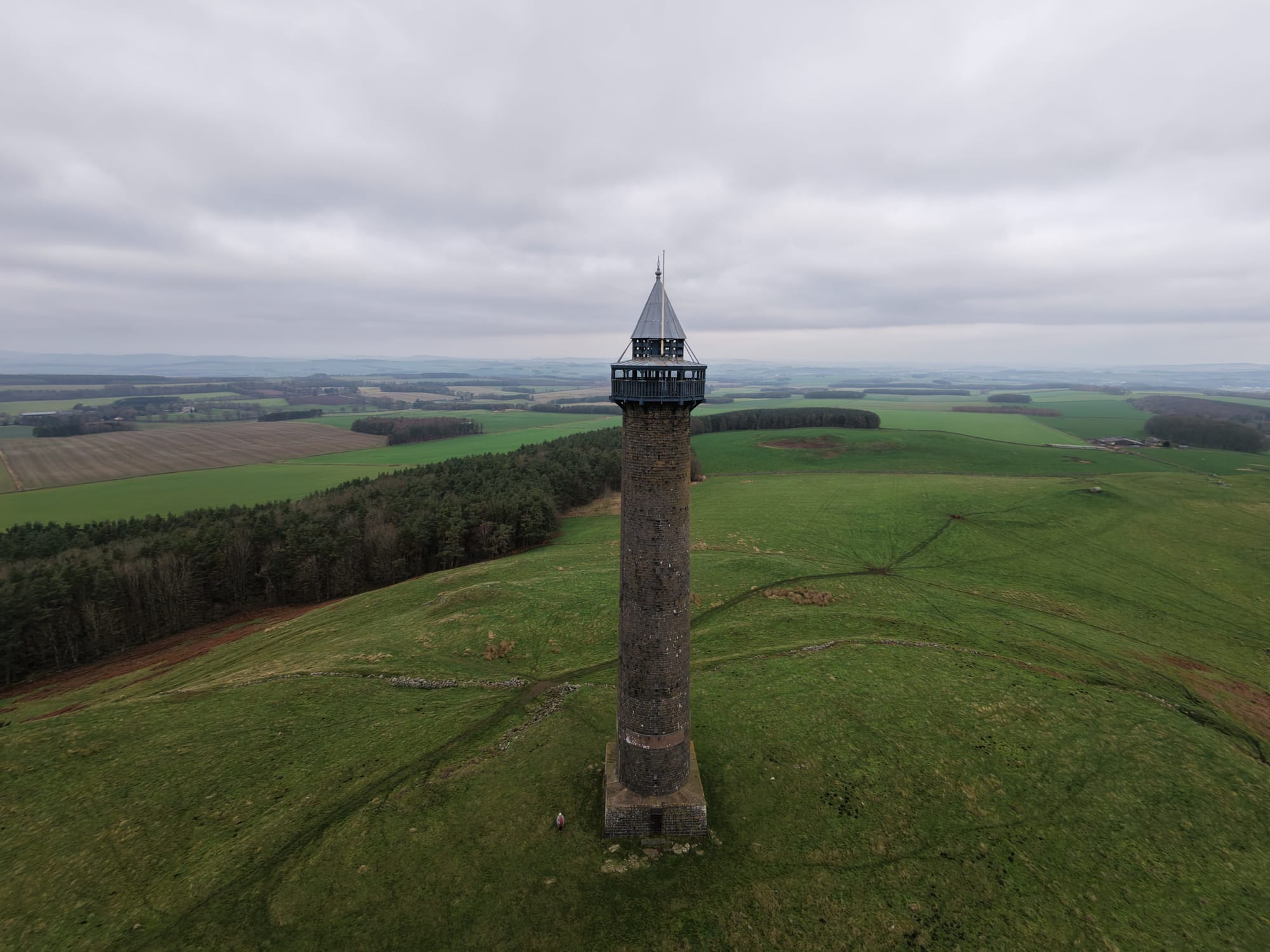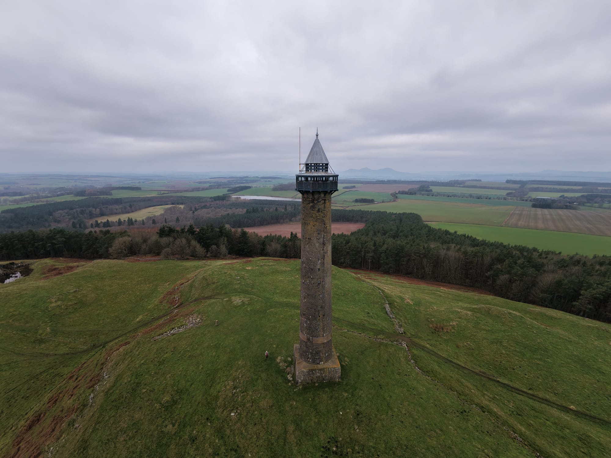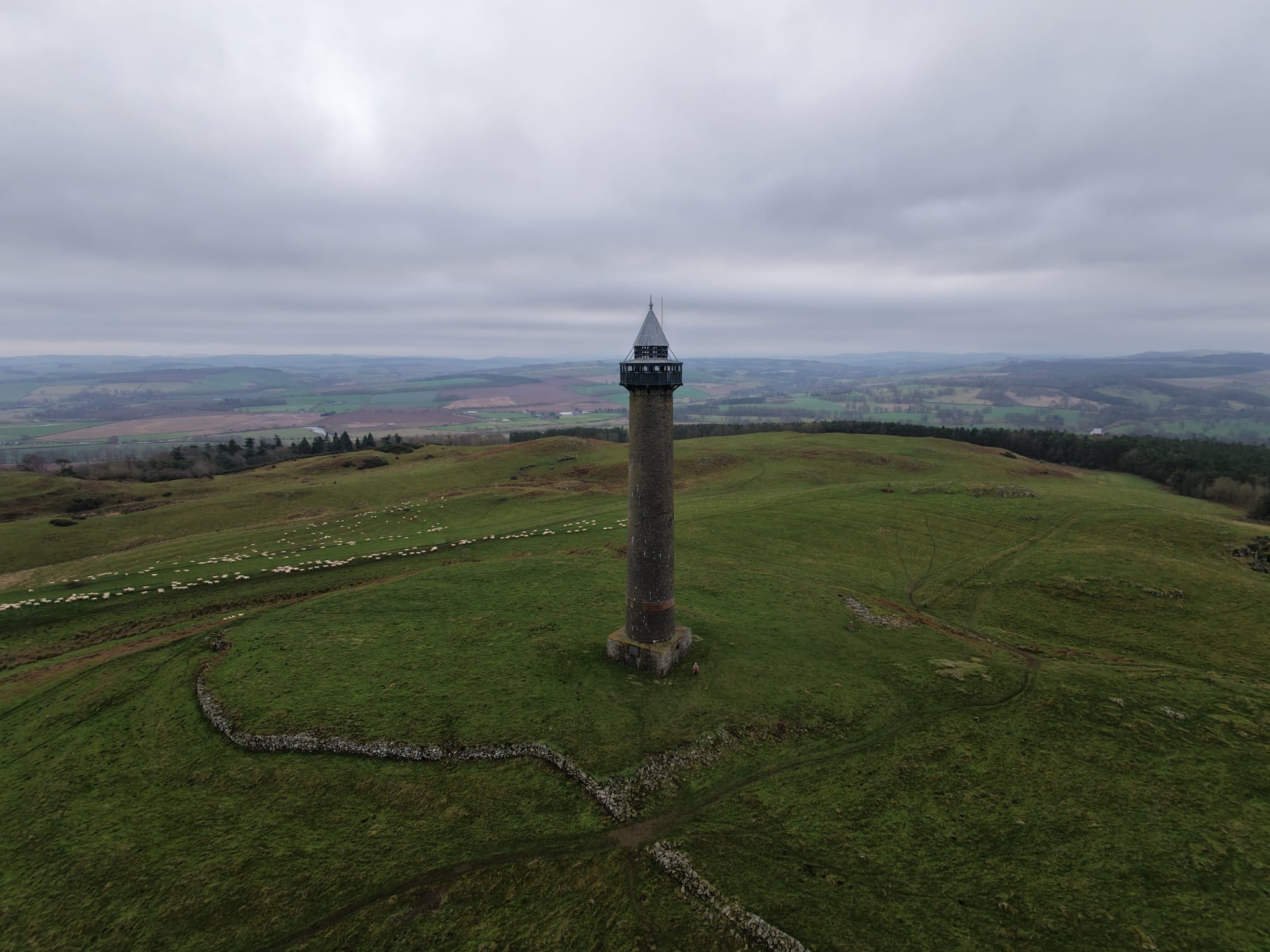 The Waterloo Monument, located near Ancrum in the Scottish Borders, is a 150-foot tower constructed between 1817 and 1824 to commemorate the Battle of Waterloo.