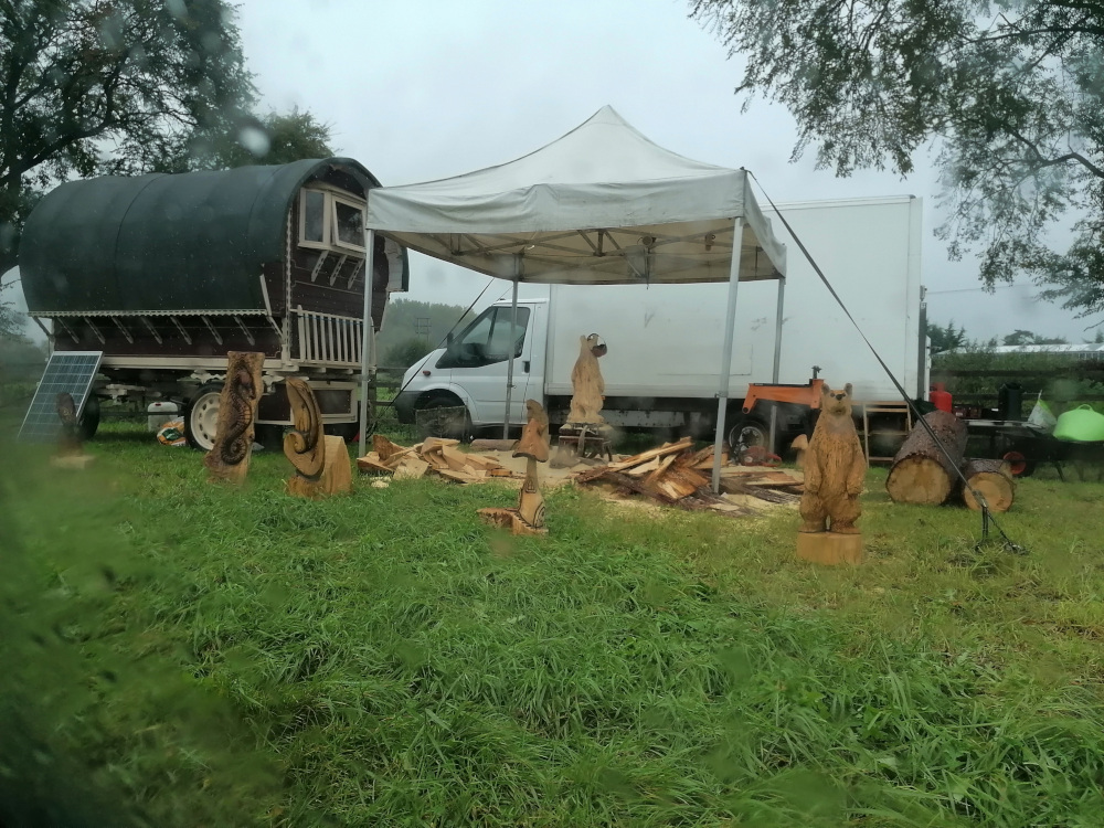 Typically, a horse-drawn traveller, who is a friend of a friend, sells wood carvings he creates aside the road in Dorset; however, in this case, Somerset.