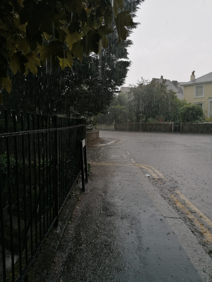 Rain in Cornwall is steadfast heavy and sopping unbridled by wind, unabridged by both stubbon stagnation and motion of motivational being.