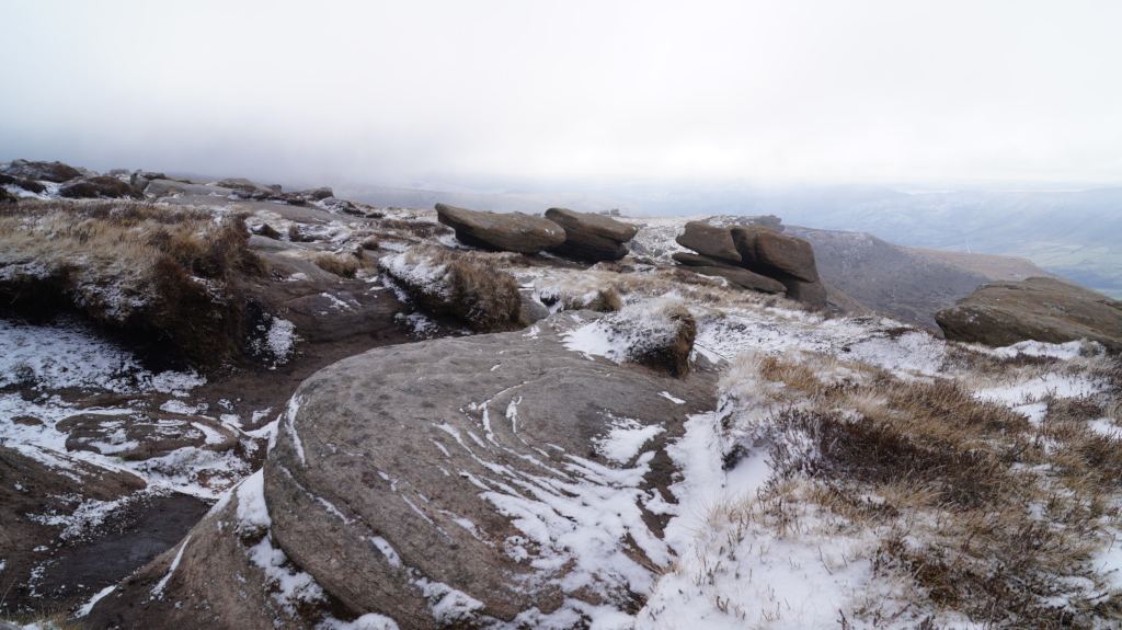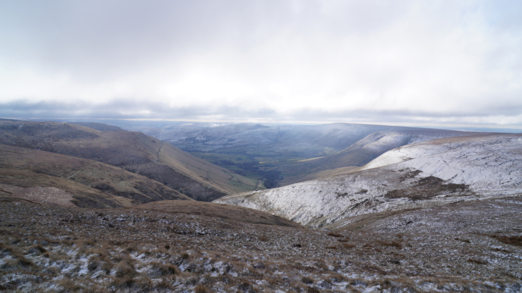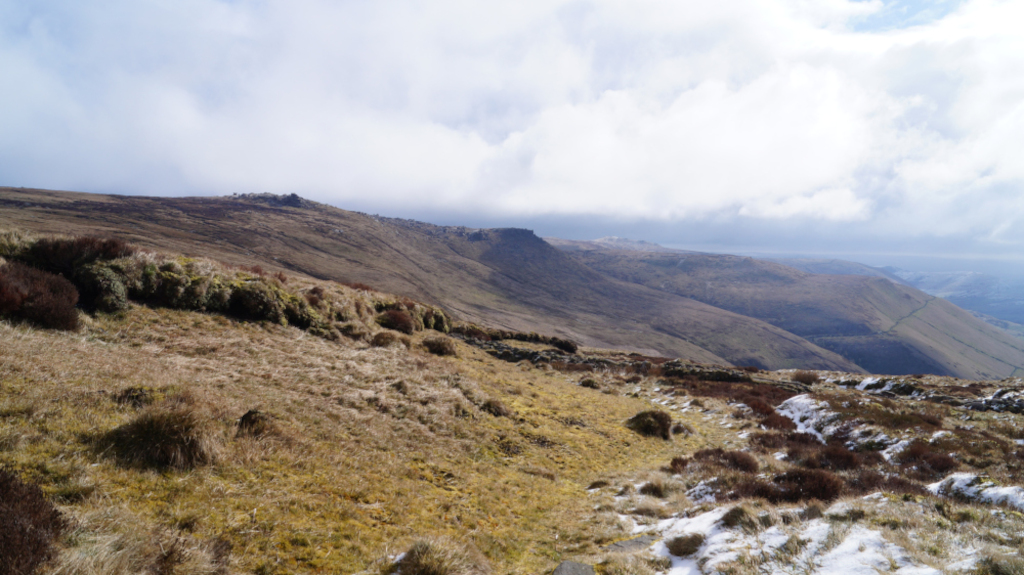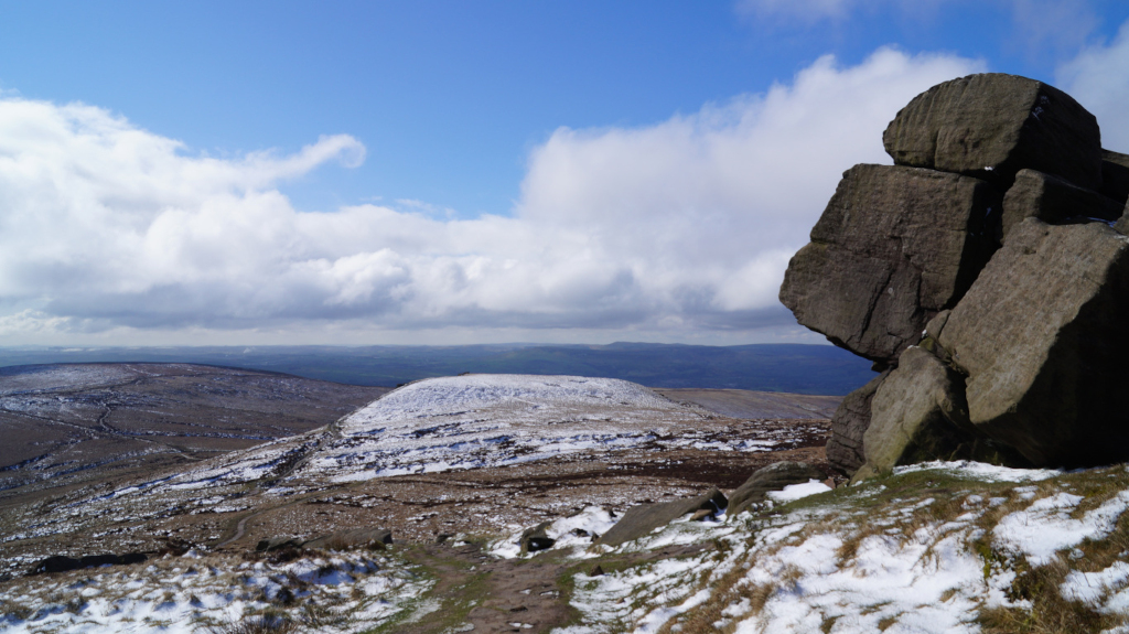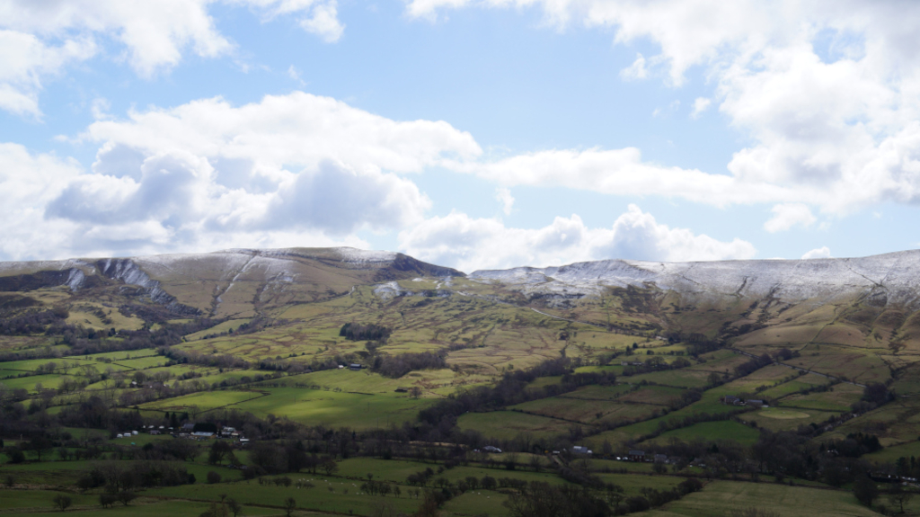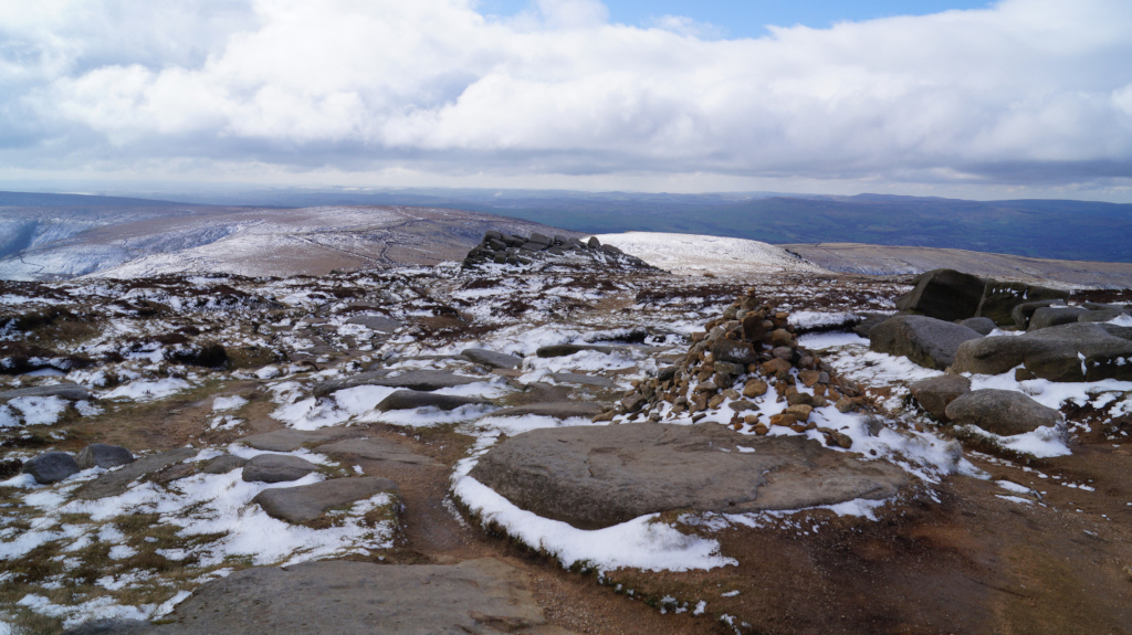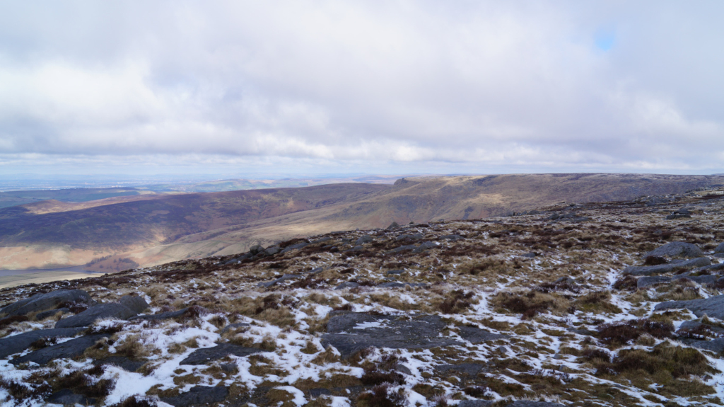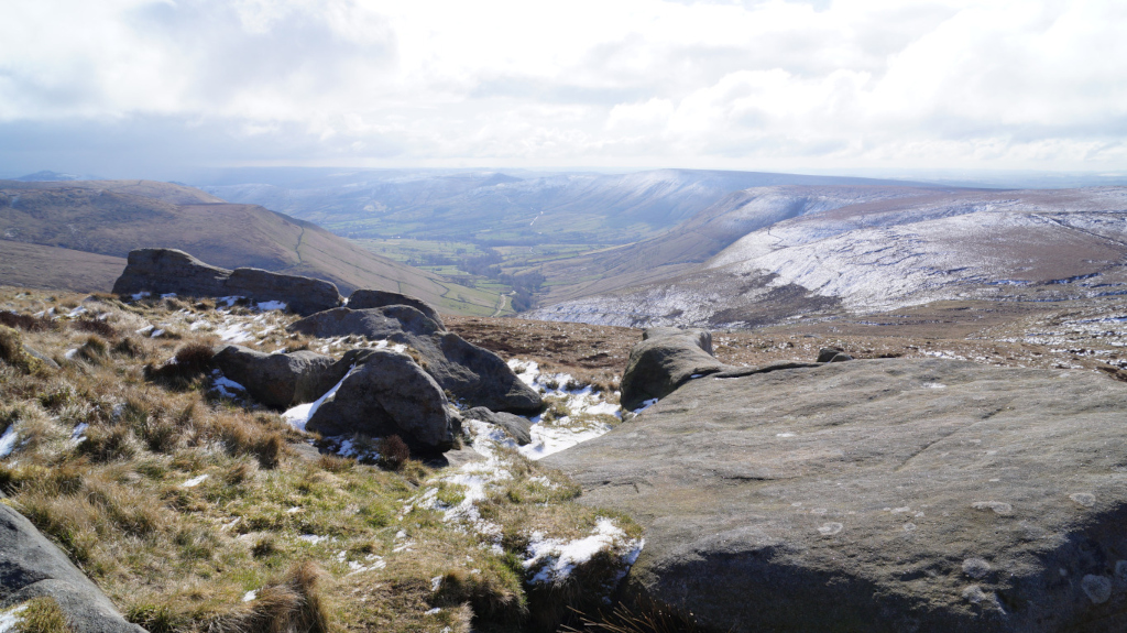 The trail up Kinder Scout was short, steady, and easy to find my way around. I would recommend this peak to any hiker who is just starting to climb mountains. Below is a view of the mountains that line up with Mam Tor; Castleton and Hope are just over the horizon.