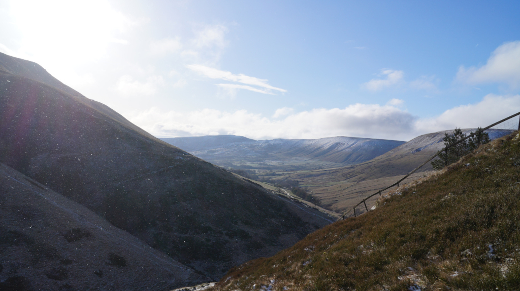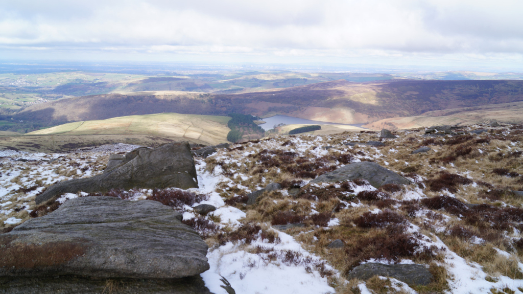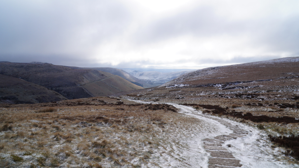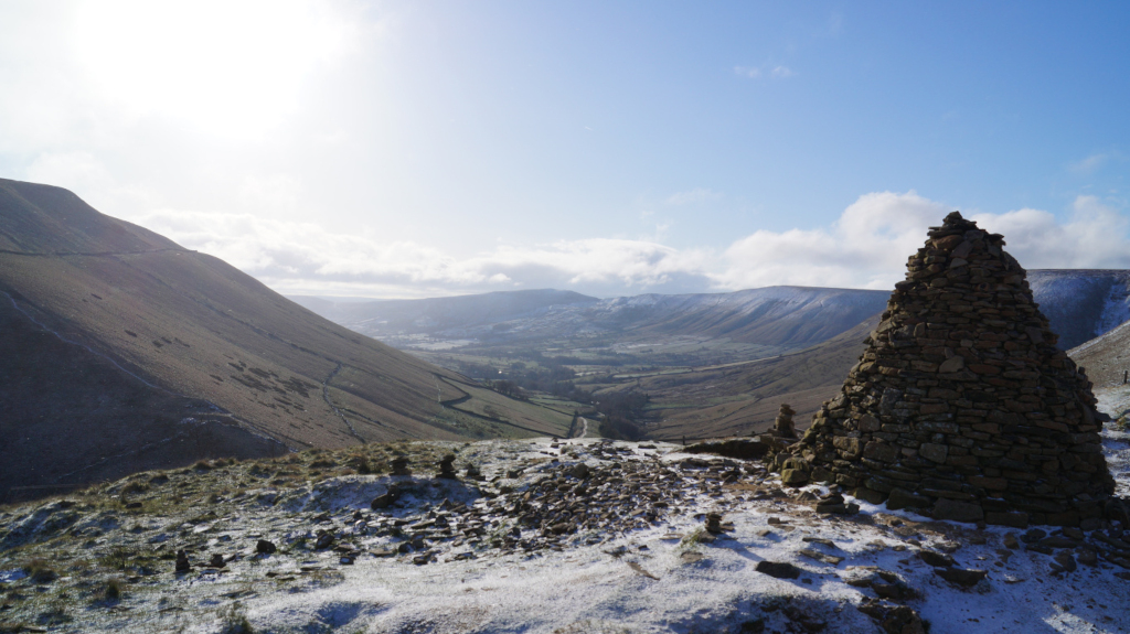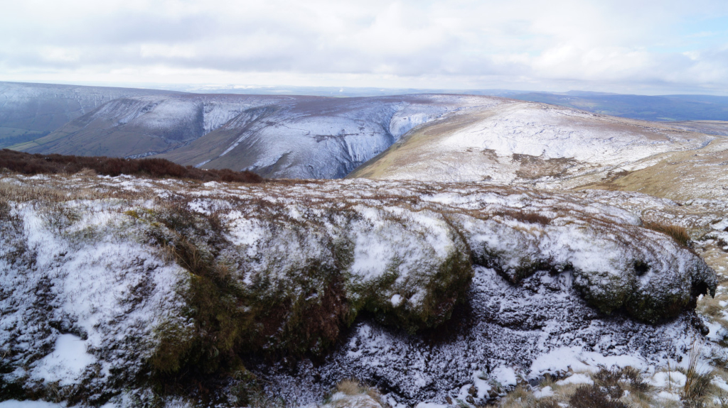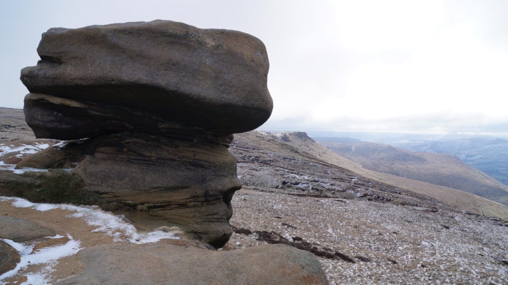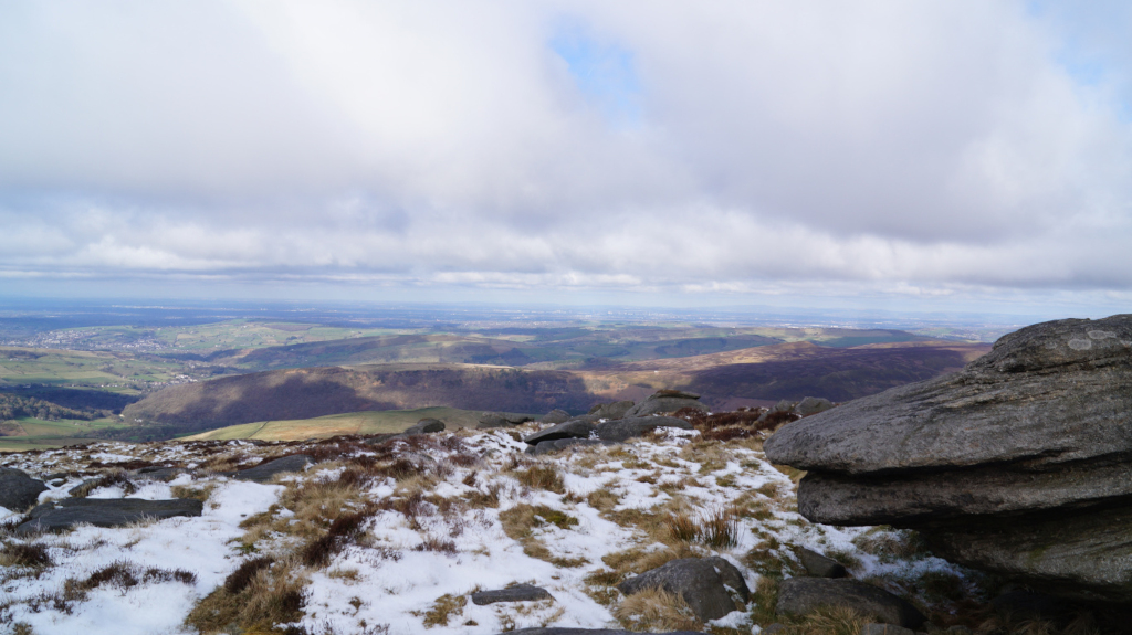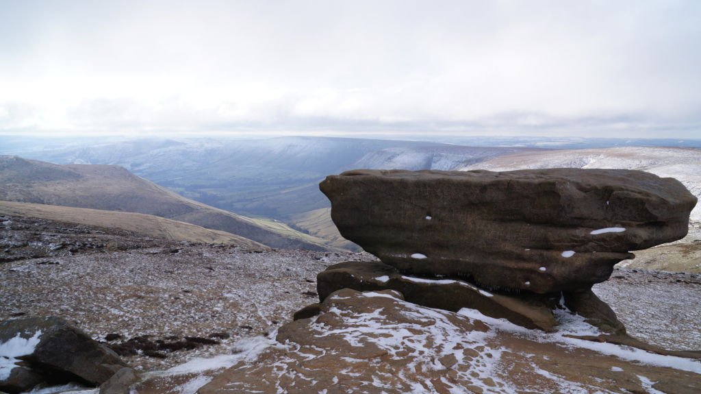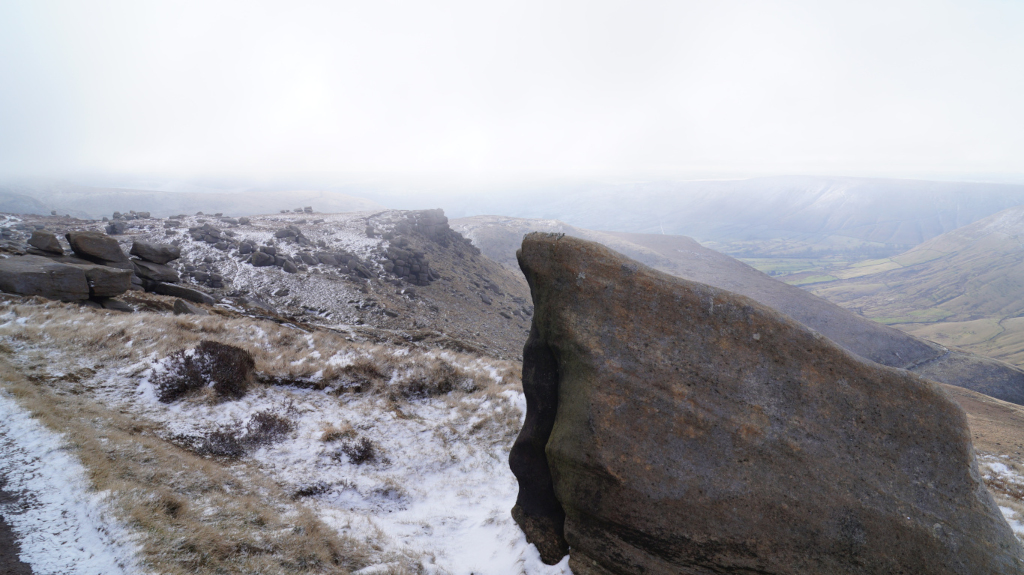 The trail up Kinder Scout was short, steady, and easy to find my way around. I would recommend this peak to any hiker who is just starting to climb mountains. Below is a view of the mountains that line up with Mam Tor; Castleton and Hope are just over the horizon.