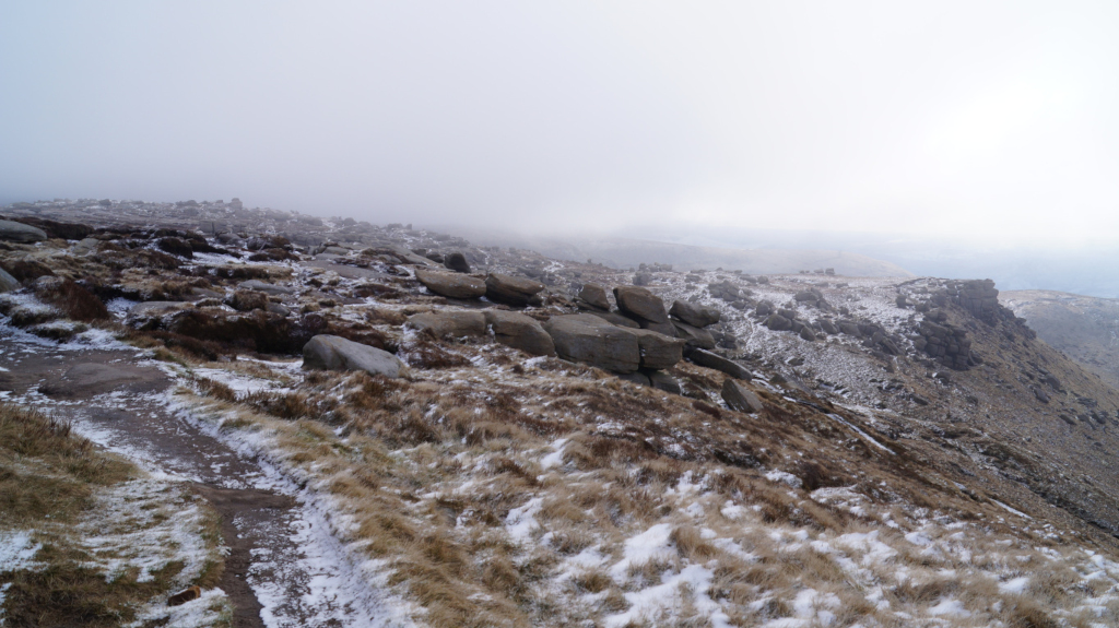I left Edale and headed north west along the Transpenine Way toward Kinder Scout Peak, so upset by such an uncomfortable night that I threw the remnants of my tent onto a barbed wire fence.