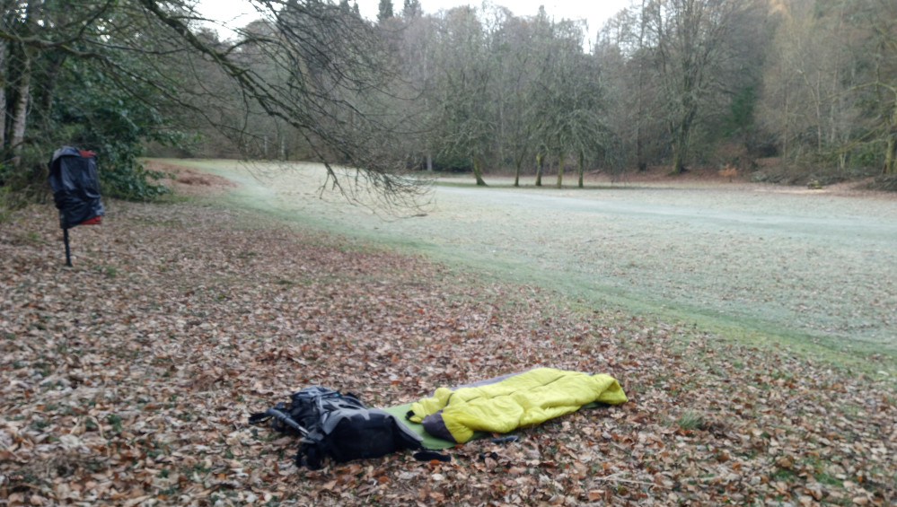 I was sleeping in my sleeping bag outside under the stars by the River Tay on a green in Birnam.