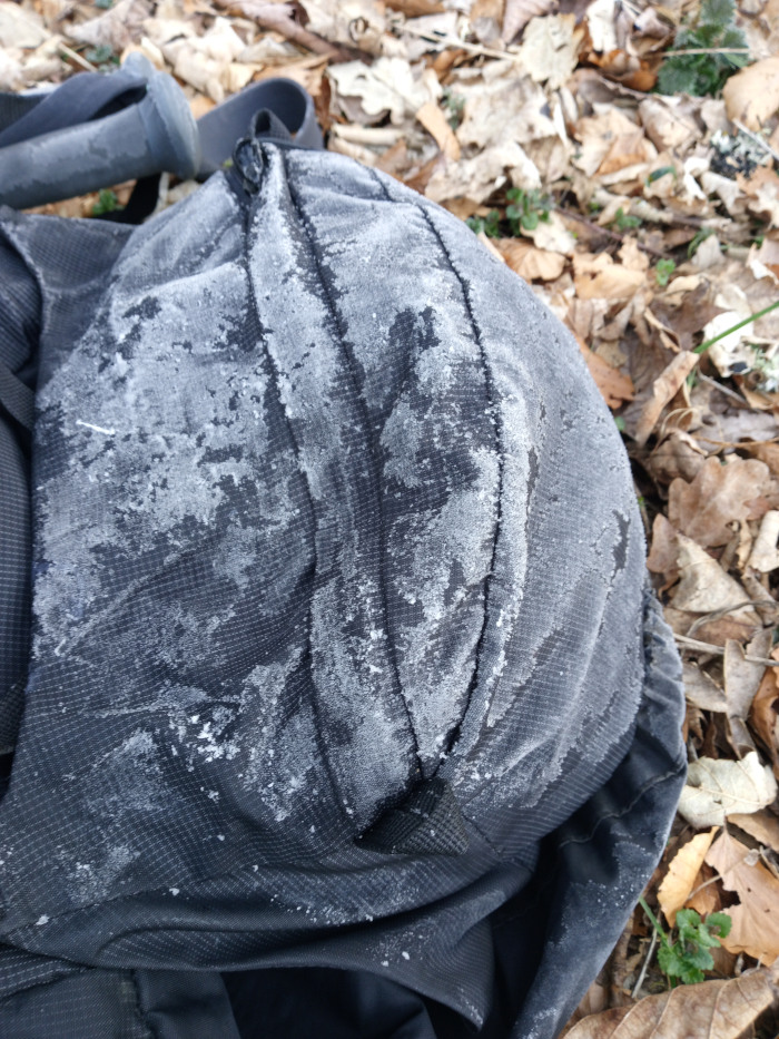 Everything but my sleeping bag was covered in a thin layer of ice due to the river's mist.