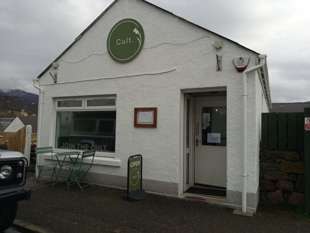 I walked south out of Dulnain Bridge and onto the A95 where I managed to get a lift of a guy driving a Honda 4/4 into Aviemore. Myself and the guy, an ecology student from Inverness, decided to get breakfast, but the menu was so bad that we only got a couple of lattes. While we were eating pizza at a restaurant called the Balavoulin, we had to deal with some rude men sitting across from us. They had the TV on to watch football, but they spent most of their time yelling at each other while talking to the waitress. Hey, I asked where I could set up my new tent, and the guy said he knew a good spot, so we left Aviemore to go there.