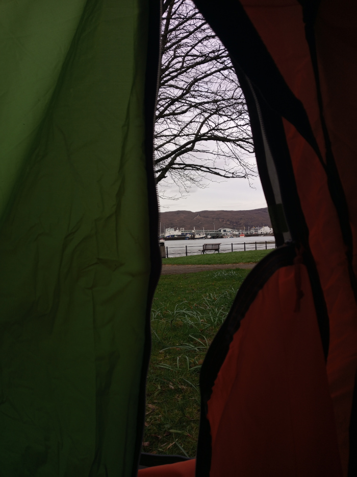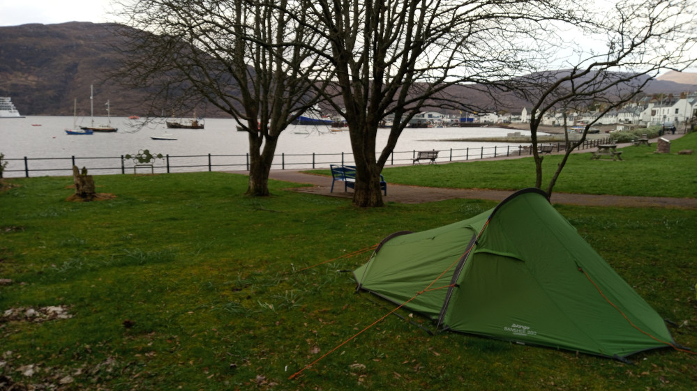 Pitched by Loch Broom in a small public park. Yes, dog walkers did wake me up.