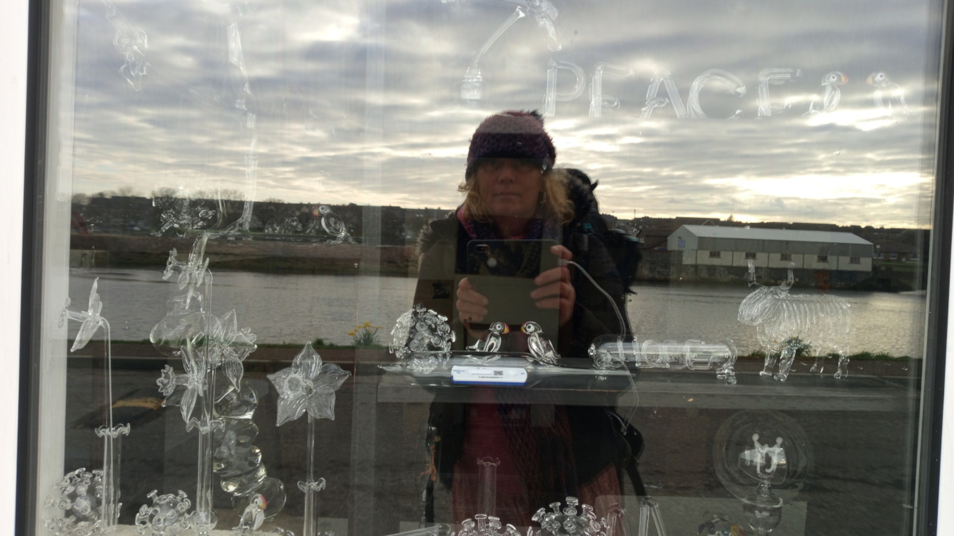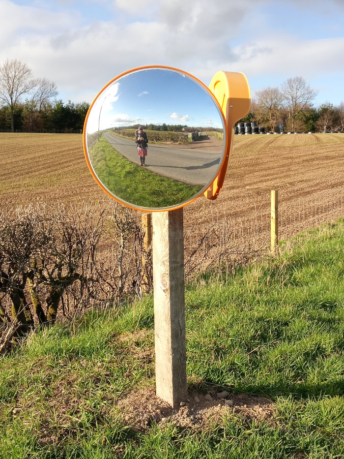 I took this photo of myself in the mirror as I continued on the river path until I reached Almondbank.