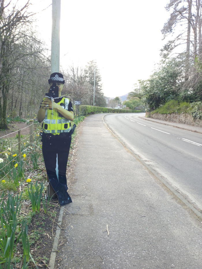 To demonstrate my ability to overcome any imposed situation, I grinned and snapped a picture. I walked back into Pitlochry and out of town the way I came in. Though I can't recall it, I managed to hitchhike to Aviemore.