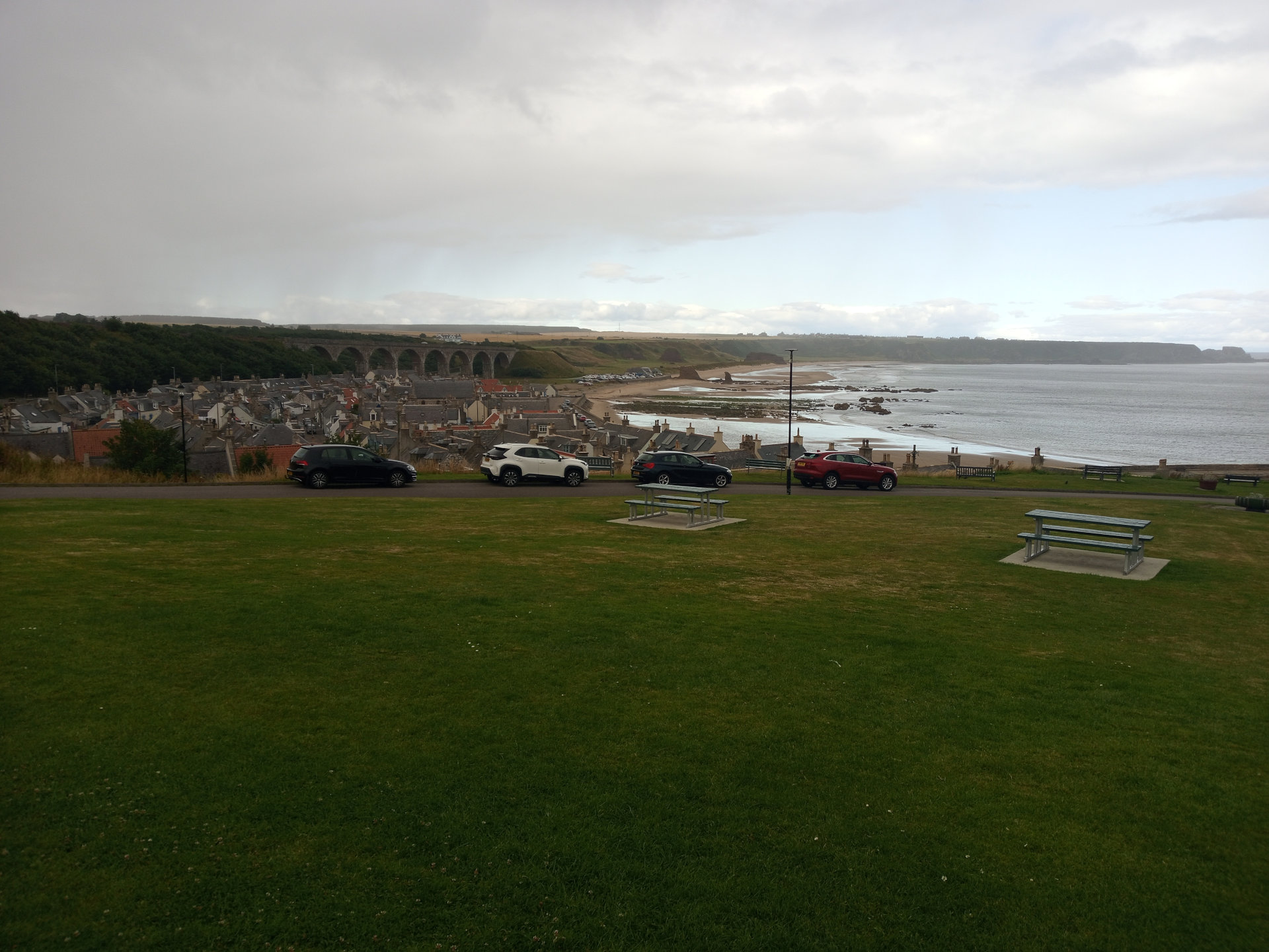 Tiredness really effects you when you’re traumatised, I did not even realise the sea had come up to my ankles resulting in wet socks / walking boots. I walked too far so had to make my escape over an emergency ladder bolted onto the sea wall. I walked past Banff harbour and pitched on some grass near a pavilion; fell asleep knowing I’d regret sleeping on this ground.