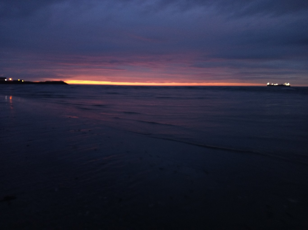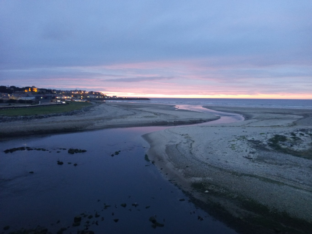 I visited another pub and left after my debit card bounced a payment. I walked two miles east before a lift came to return me to Banff. Something must have triggered me to walk to Mcduff after such a walk, where I spent my last money on a pint in the Plough. Walked back from McDuff in the evening, over Banff bridge and across the beach at Sunset.