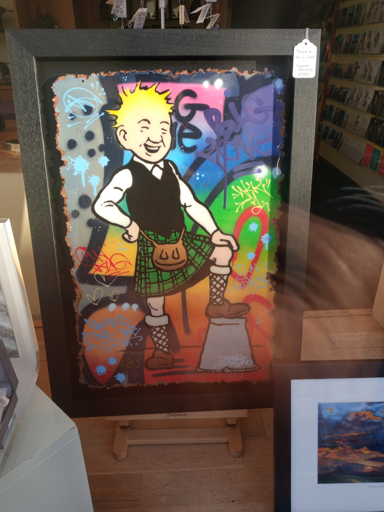 I don’t have much mind for Peebles after suffering some intense hardship there but found this picture in the shop window.