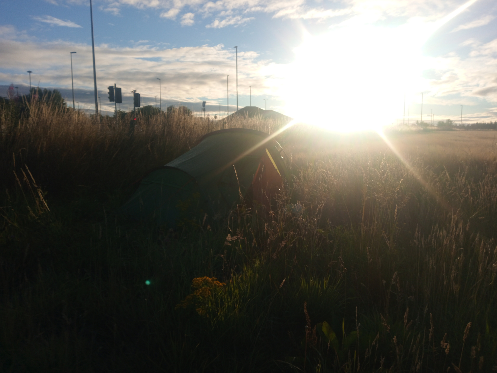 Last lift came from a polish corrier on his way home to Warrington. I felt apprehensive about leaving Scotland so stopped the lift at Gretna Green services. I attempt to reverse my direction North for an hour until after 10pm. I then walked down a slip road, ptiched up my tent, and went out like a light.