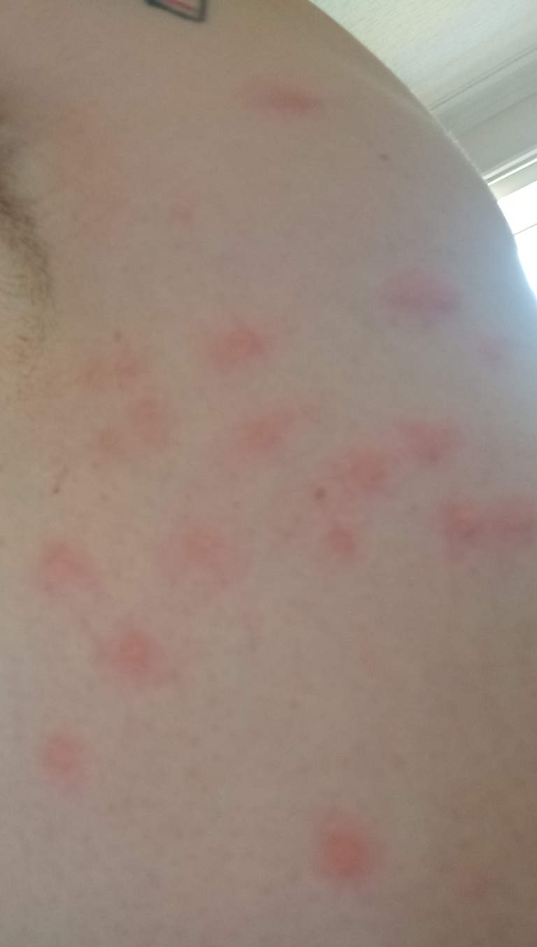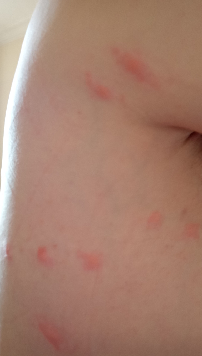 Woken anxious, and went back to sleep, this happened three times until I began to itch, got out of bed and saw this. These bites are all over my body, I did not have them before I climbed into a friends bed! He is going away for a week; so I will disappear today.