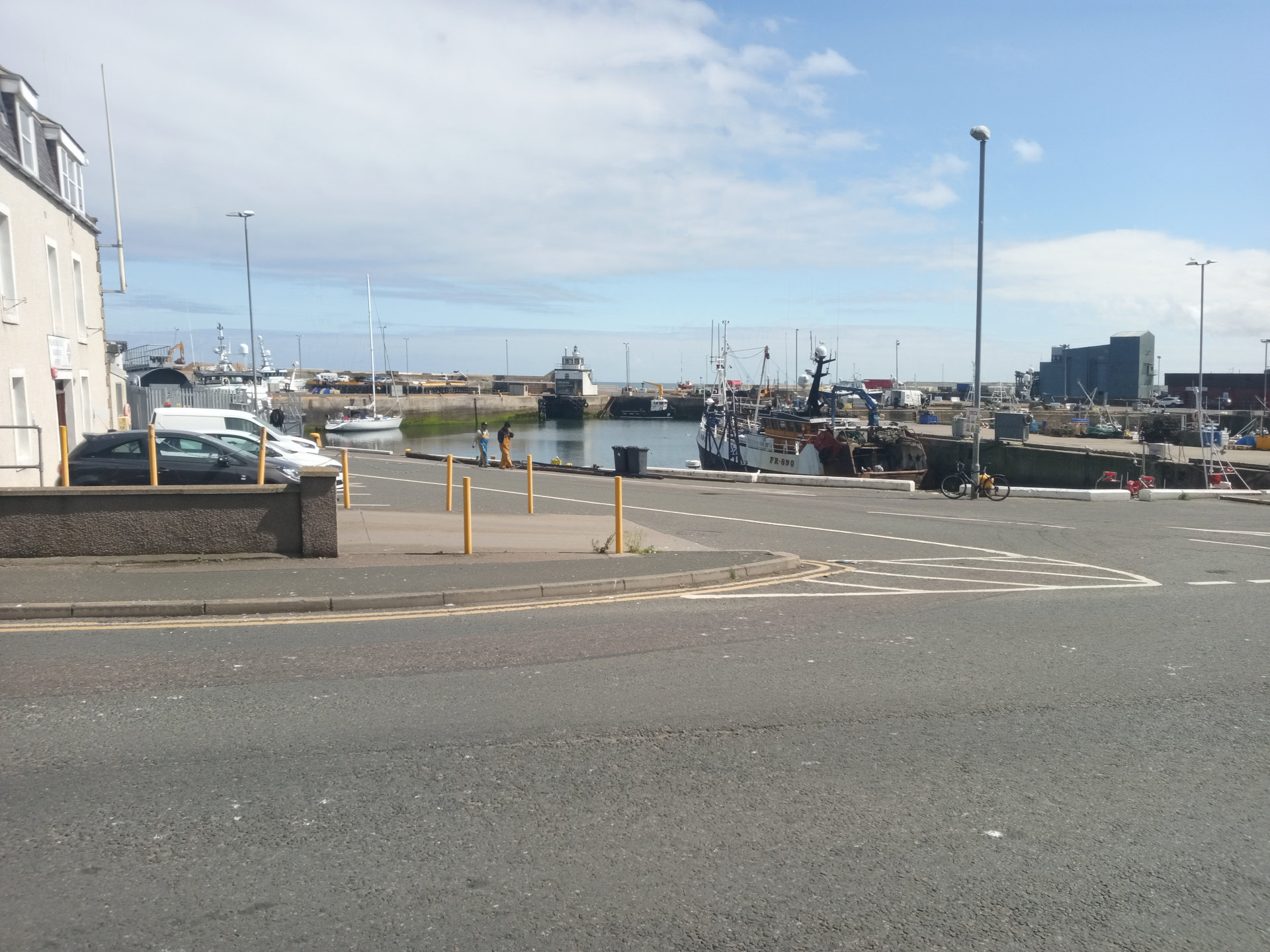 Walking north, I noticed a small camper van stopped on the opposite side of the road. Curious, I approached and was offered a lift by a man named Harry, whom I had seen at the Calley, a pub in Peterhead, the previous evening. Took me to the Broch, where I discovered a delightful bakery named "Bruce" in the town. Subsequently, I proceeded to the Ship Inn, which is situated by the harbor. In the vicinity of the bar, I encountered an individual whom I had previously encountered at the Waverley bar in Peterhead.
