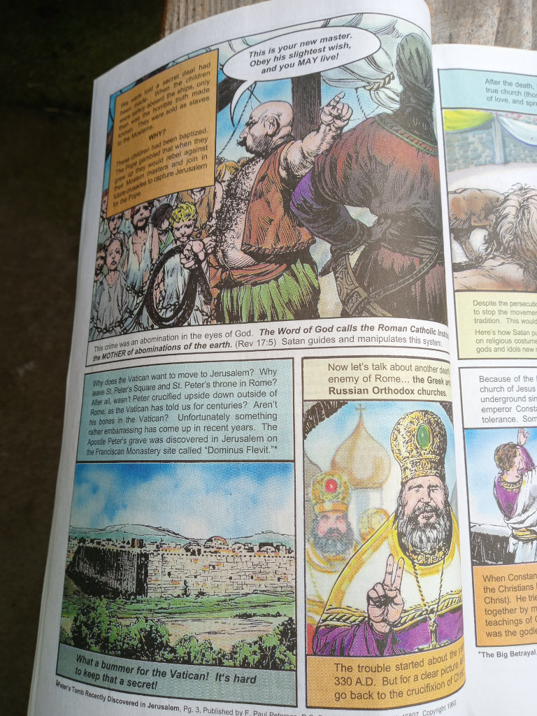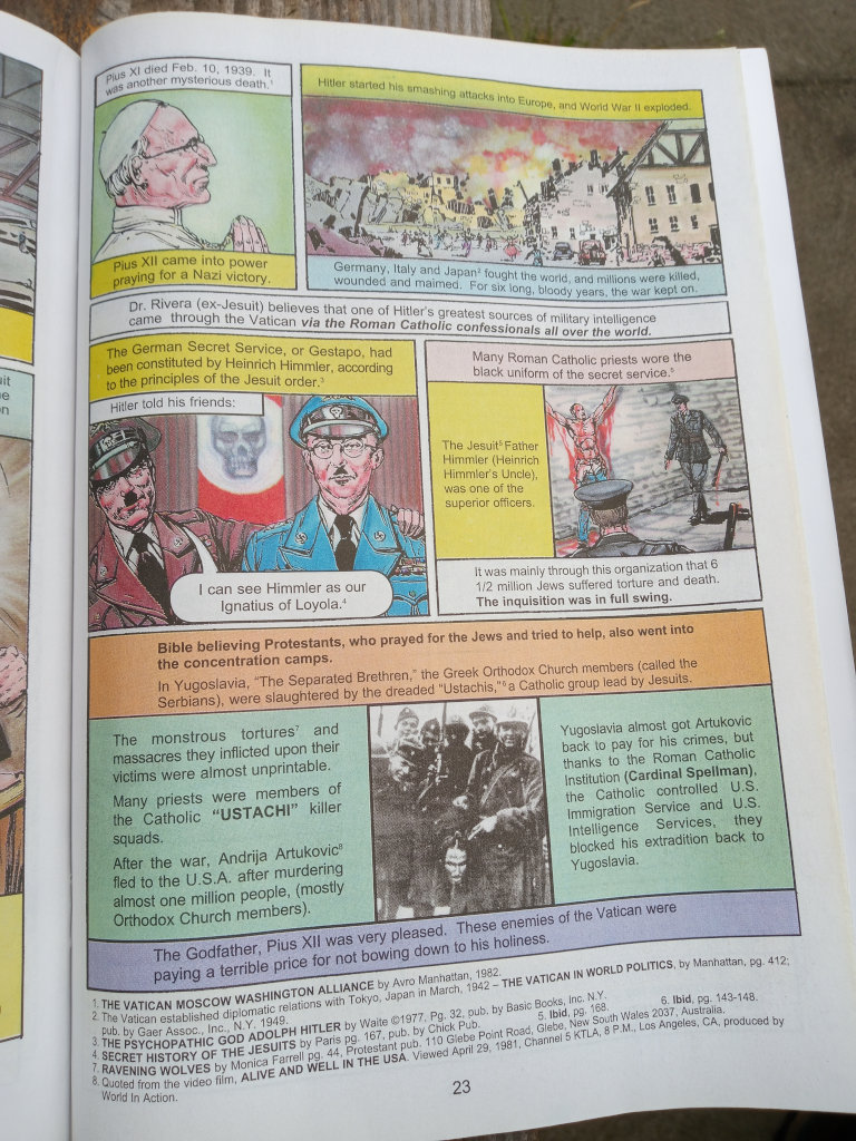Talked before his wife arrived with porridge and honey, and then continued to converse. He's knowledgeable about the Vatican, provided me with a leaflet that contained pertinent information. (click to expand).