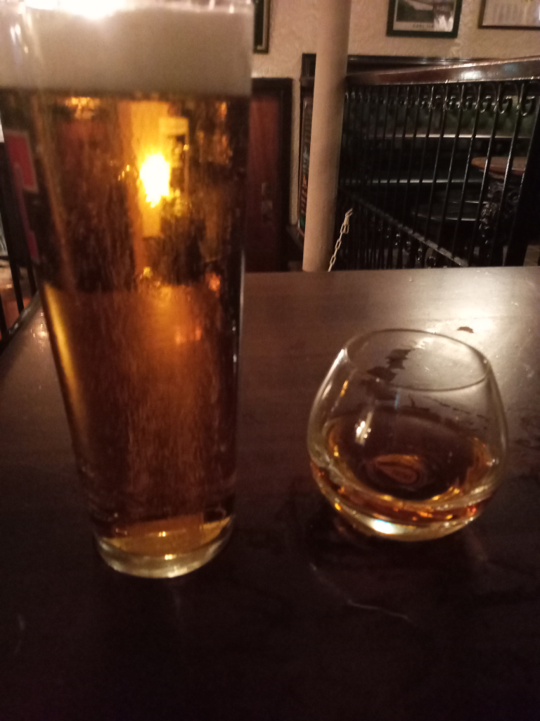 I was inebriated at a Glasgow whisky bar after I walked out on the Buckie Monster due to his threat to inflict bodily harm.