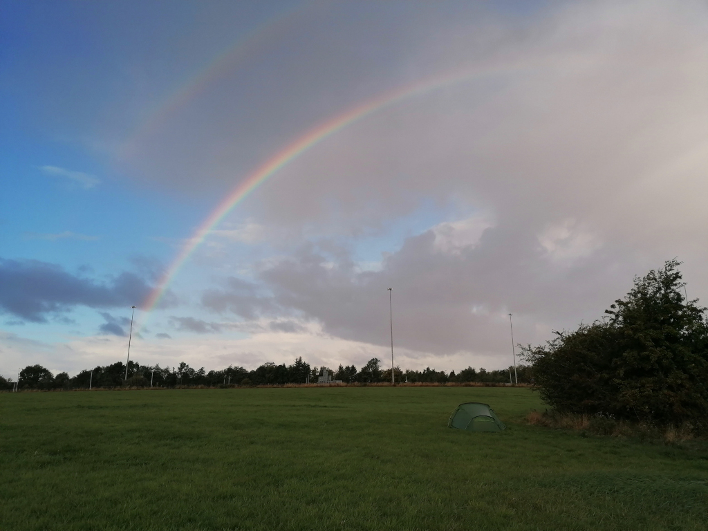 He took me along the A38 to Newton Abbott, it was dark but not late so I tried for another lift. A 4×4 stopped, and driving was a hippie DJ guy, he gave me a lift to Totnes. I walked down a quiet lane and through some gates, at the end of the lane, past some buildings I found a place to pitch my tent.