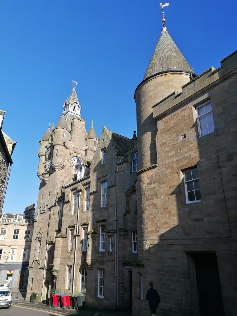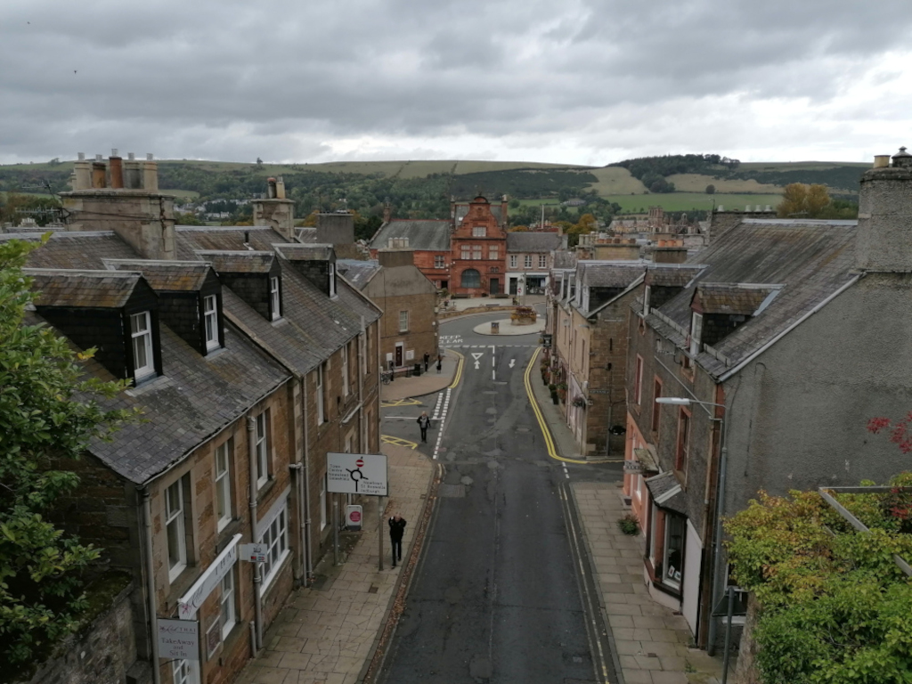 Another lift from a retired police officer took me into Peebles. I popped into a Spa shop and purchased some clearance supplies. It’s strange how blonde cashiers (this occasion with septum piecing) disappear, suddenly, on a revisit after paying out food, but I am now munching happily on a pasty whilst walking down Peebles High Street.