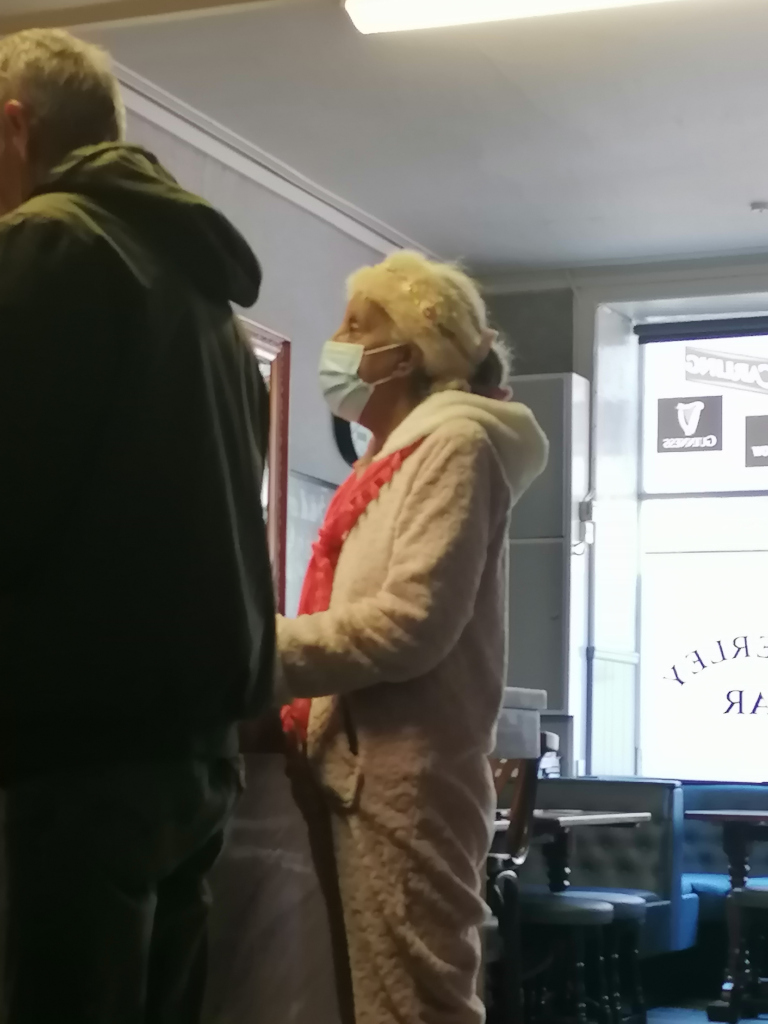 After visiting a cafe for a hot roll, where I was observant, with some sadness at the sight of a tearful praying woman, I settled in a bar named the Waverly, I got on well with the barmaid and the clientele, we were all bemused by an elderly womans atire, she had arrived early afternoon.