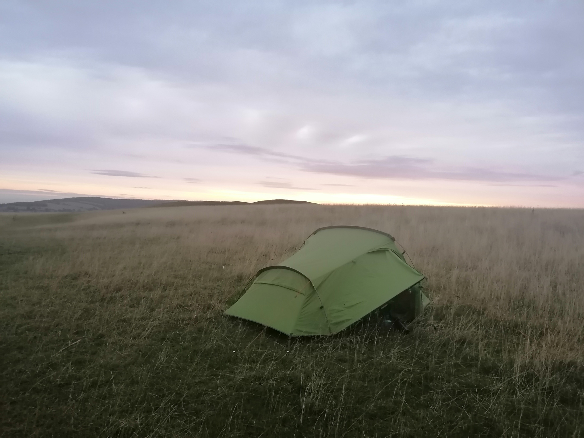 Woken my tent pitched high on Selsley common, tent poles survived the strong winds here last night which I guess is awesome.