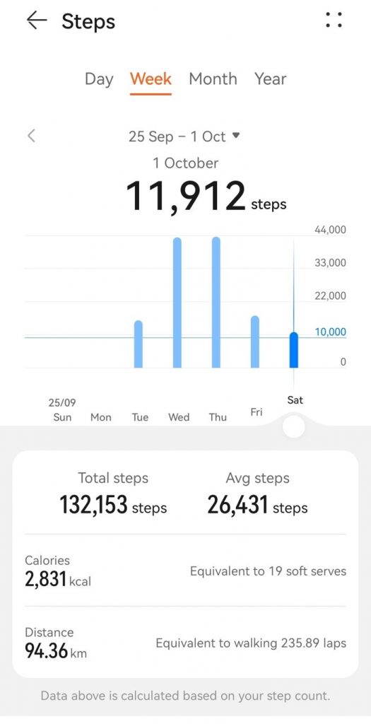 I have begun monitoring my steps because I am concerned about anxiety walking my feet into plantar fasciitis again. These are my step statistics from yesterday.