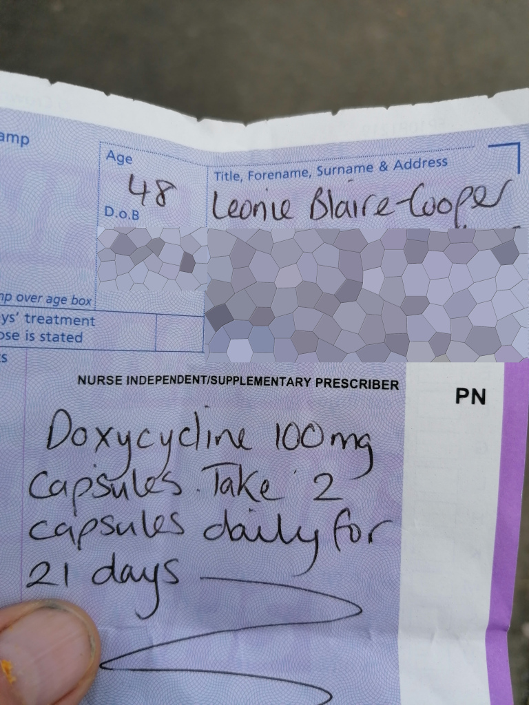 Later I walked into Totnes, purchased some breakfast from Morrisson supermarket then made my way to the Minor Injuries Unit. I talked with the nurse about symptoms I was feeling, that I had been bit by ticks at least twenty times in the Highlands, and he prescribed me a three-week course of antibiotics to treat Lyme Disease symptoms.