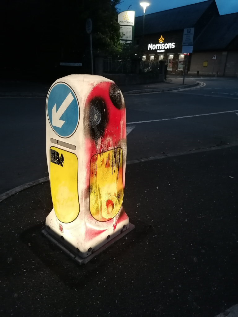 I got a soft spot for this friend, I used to say hi to her when I lived in Truro, Cornwall. I was dropped at some obscure A38 junction but was given a lift by some time-killing pensions whose dog was getting x-rayed at the vets. From Exeter services I was named up by a trade plater going to Leicestershire, he took me to Strensham M5 service station before turning off towards the East Midlands on the M42. The next lift came from a sound engineer named Penny, after arranging to take me to Lancashire she abruptly ejected me at Frankly M5 services stating “Social Anxiety”; I dislike this station, and was terrorised there. I recognised her as compass evil from Soho, when I was displaced on the streets of Westminster, London. Luckily a student from Brighton picked me up five minutes later, he took me to Knutsford M6 services. The last lift came from a Derbyshire man driving a truck to Sellafield nuclear power station. On his trailer was a device to crack open damaged concrete coffins that were housing spent nuclear fuel rods. He said Sellafield was to become the nuclear cemetery of the world. My eyes welled up with tears of tiredness, as the rain poured over the window screen at Shap. I recognised him also, maybe from another lift sometime ago. I tried but was unsuccessful at getting another lift from Penrith M6 roundabout. The street lamp above me was out, was much too dark for anybody to stop, fearful they are. I examined my maps locating a nearby county park to pitch my tent for the night; but adjacent a noisy, relentlessly busy A66 did not sleep.