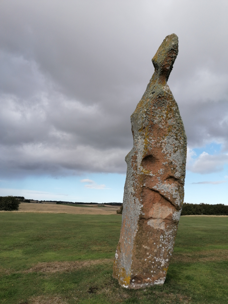 And a wandering through a golf course I arrived a the Standing Stones of Lundin.